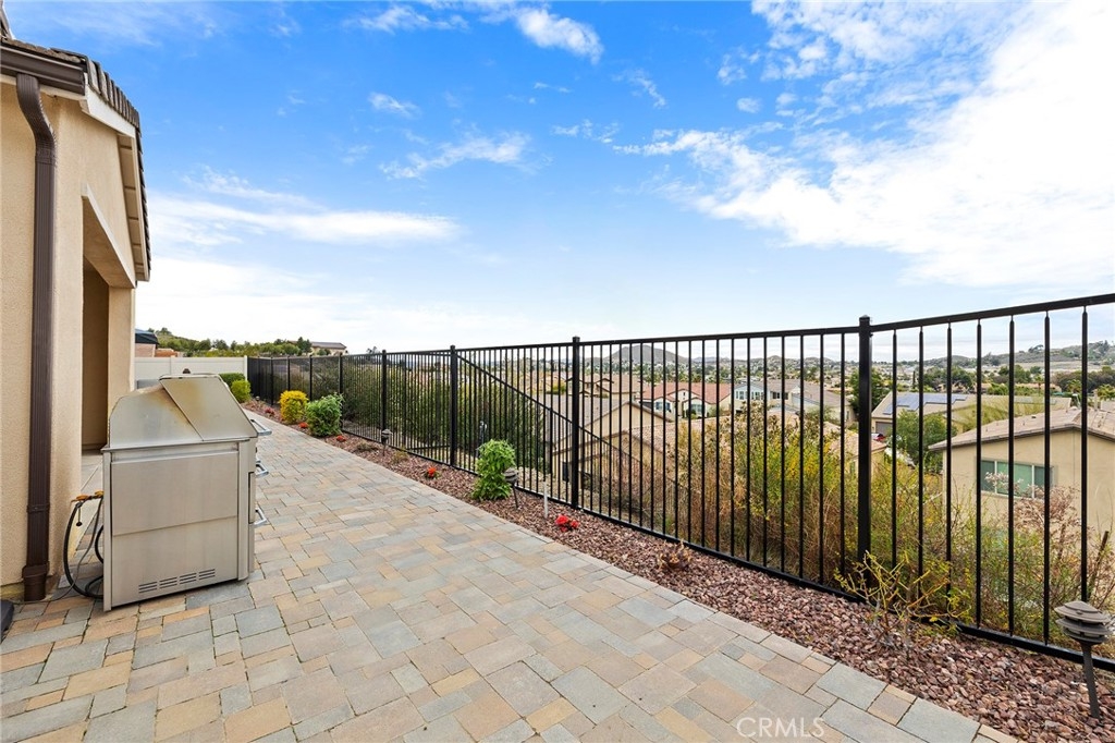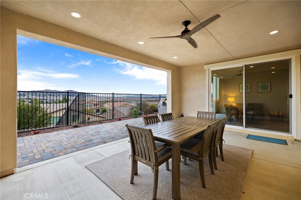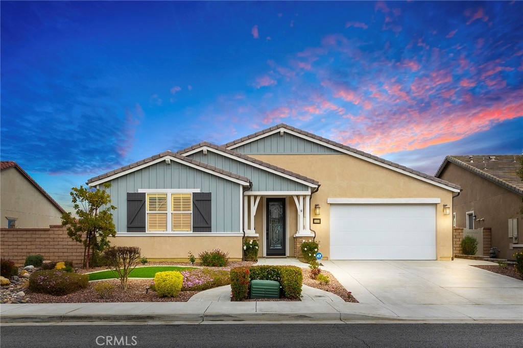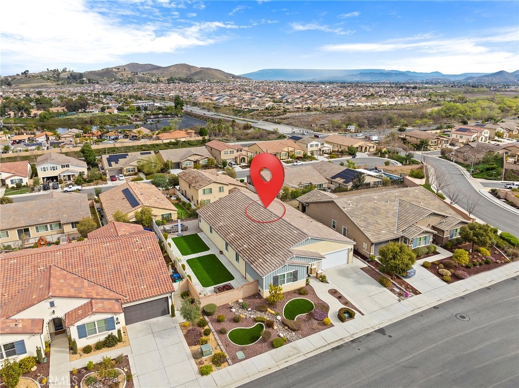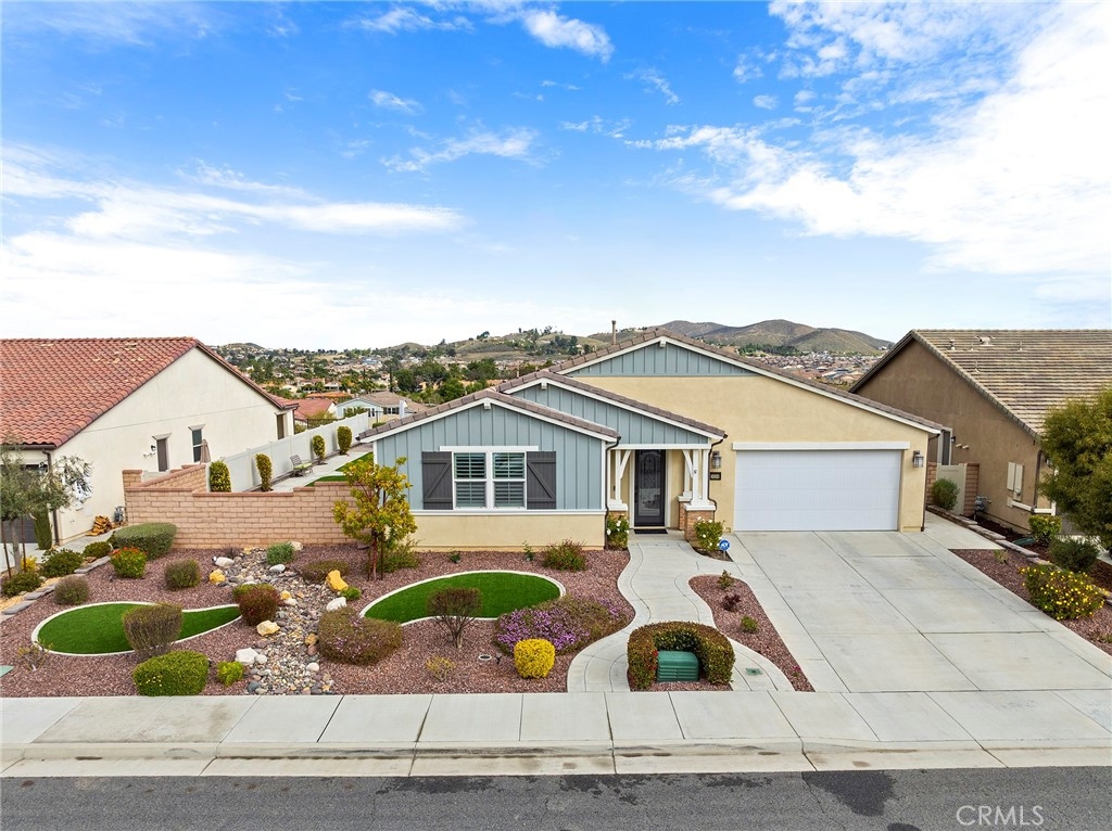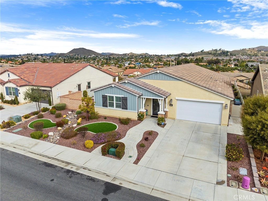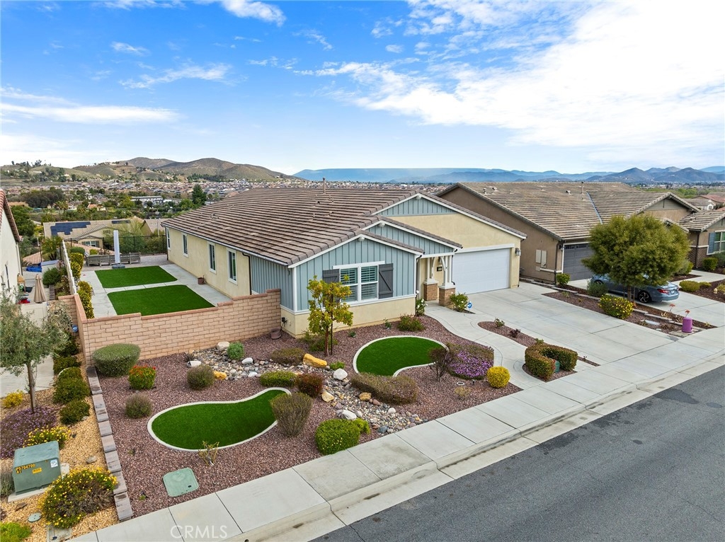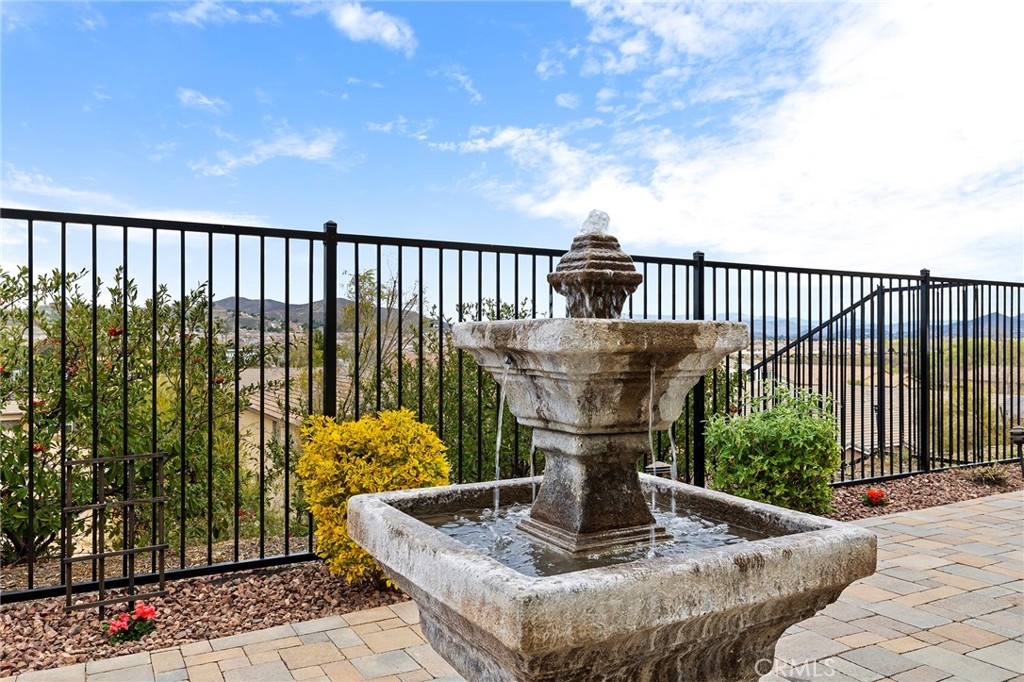 VIEWS! VIEWS!! VIEWS!!! Luxurious Single-Story Estate in Gated Province at Audie Murphy Ranch. Discover breathtaking panoramic mountain and city light views from this exquisitely designed 3,000 sq ft single-story residence in Menifee's most prestigious gated community. This spectacular 4-bedroom, 3-bathroom home features a flowing open concept floor plan where the gourmet chef's kitchen seamlessly overlooks an expansive family room and elegant dining area. Refined details include beautiful custom woodwork, soaring ceilings, recessed lighting, designer plantation shutters, crown molding, and premium luxury vinyl plank flooring. A versatile bonus space offers possibilities as a cozy kitchenette or sophisticated seating area. The sumptuous master retreat features an oversized bedroom suite with a spa-inspired bathroom including separate shower, soaking tub, and dual vanity. The space includes a built-in linen closet and impressive walk-in closet with custom built-ins. All secondary bedrooms feature walk-in closets and ceiling fans, with two sharing a well-appointed Jack-and-Jill bathroom. The kitchen is any chef's dream with professional-grade appliances including a SubZero built-in refrigerator with reverse osmosis, professional 6-burner gas cooktop, and premium Miele dishwasher. Enjoy custom shaker cabinets, a spacious walk-in pantry, and butler's pantry. The laundry room includes a refrigerator with reverse osmosis and wash sink. Stay comfortable with the energy-efficient QuietCool whole house fan system. The 3-car tandem garage features cabinet storage and epoxy flooring. Outside, meticulously landscaped grounds showcase mountain vistas, a tranquil fountain, glass-rock fireplace, and low-maintenance artificial turf. Ideally positioned between the 15 and 215 freeways with easy access to shopping and Province's resort-style amenities: pools, spas, sports courts, clubhouse, trails, and skate park.