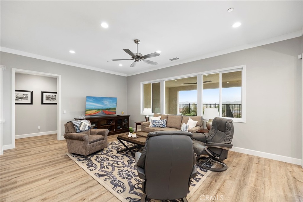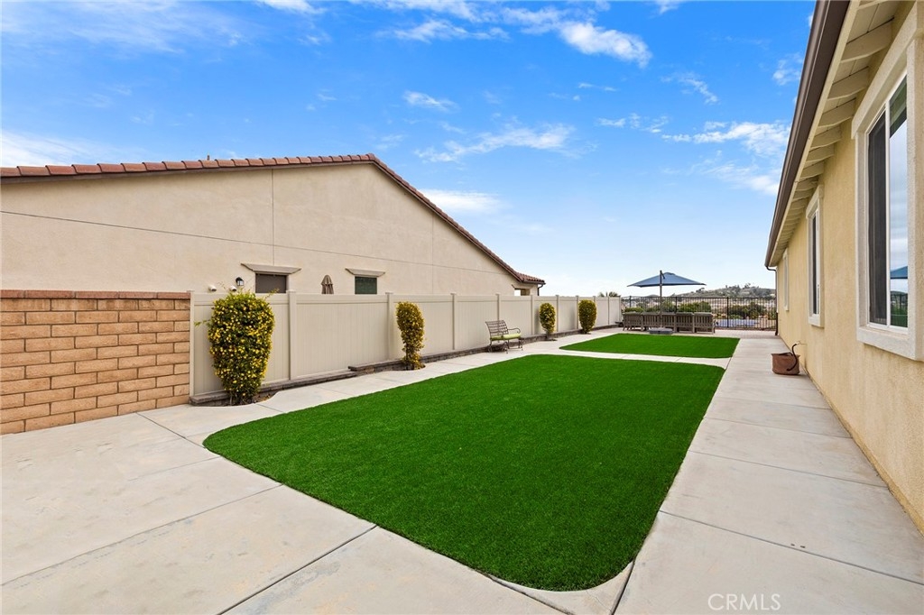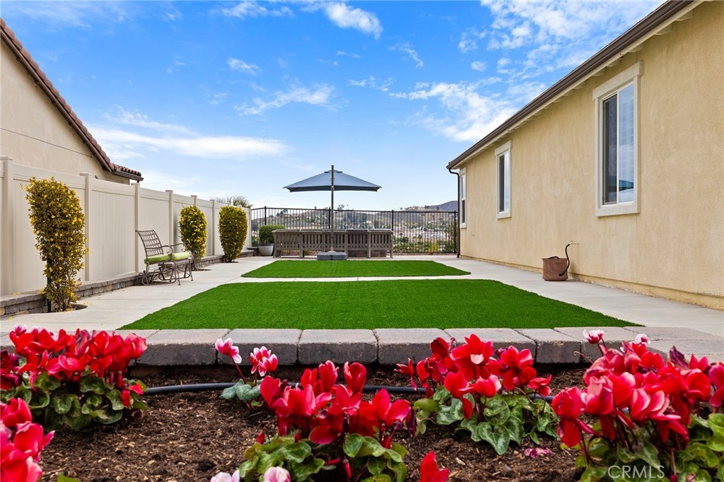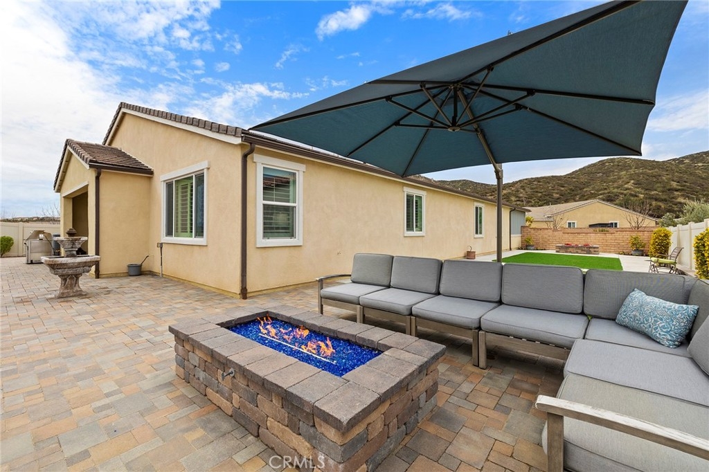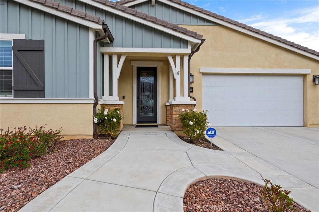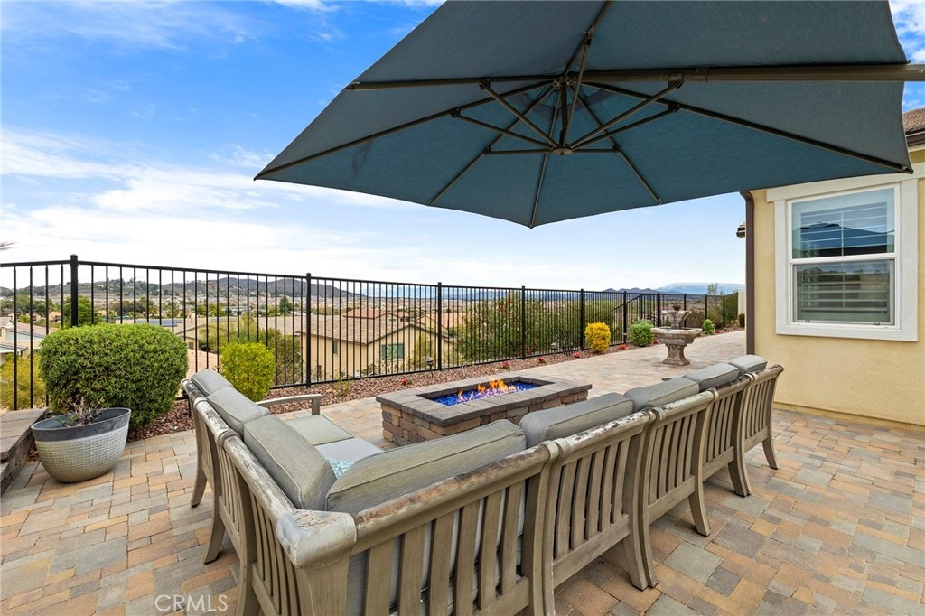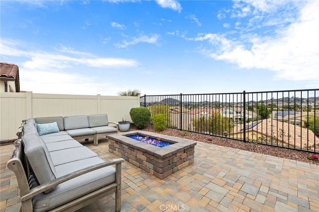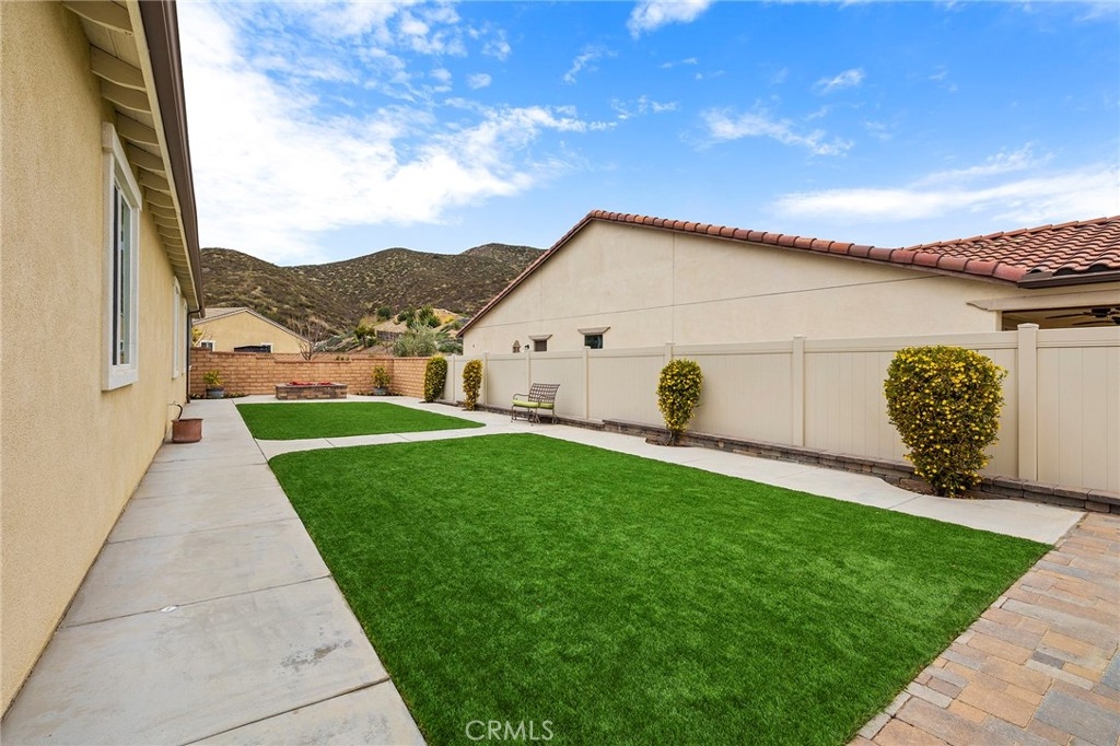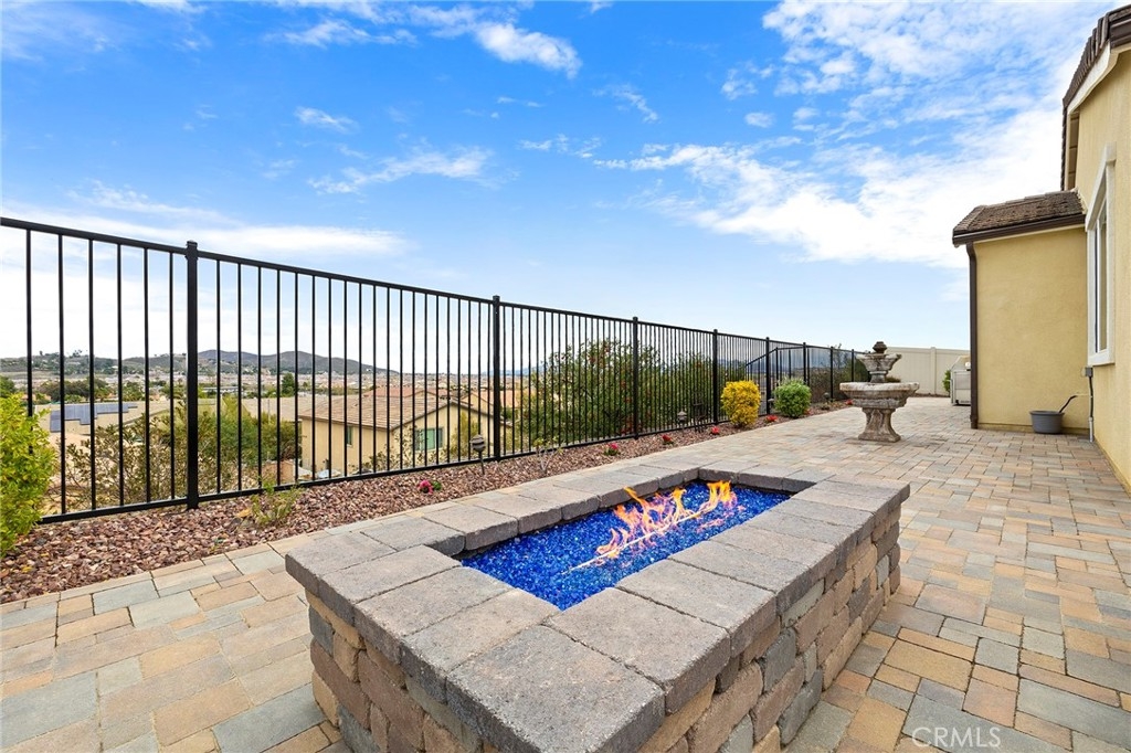VIEWS! VIEWS!! VIEWS!!! Luxurious Single-Story Estate in Gated Province at Audie Murphy Ranch. Discover breathtaking panoramic mountain and city light views from this exquisitely designed 3,000 sq ft single-story residence in Menifee's most prestigious gated community. This spectacular 4-bedroom, 3-bathroom home features a flowing open concept floor plan where the gourmet chef's kitchen seamlessly overlooks an expansive family room and elegant dining area. Refined details include beautiful custom woodwork, soaring ceilings, recessed lighting, designer plantation shutters, crown molding, and premium luxury vinyl plank flooring. A versatile bonus space offers possibilities as a cozy kitchenette or sophisticated seating area. The sumptuous master retreat features an oversized bedroom suite with a spa-inspired bathroom including separate shower, soaking tub, and dual vanity. The space includes a built-in linen closet and impressive walk-in closet with custom built-ins. All secondary bedrooms feature walk-in closets and ceiling fans, with two sharing a well-appointed Jack-and-Jill bathroom. The kitchen is any chef's dream with professional-grade appliances including a SubZero built-in refrigerator with reverse osmosis, professional 6-burner gas cooktop, and premium Miele dishwasher. Enjoy custom shaker cabinets, a spacious walk-in pantry, and butler's pantry. The laundry room includes a refrigerator with reverse osmosis and wash sink. Stay comfortable with the energy-efficient QuietCool whole house fan system. The 3-car tandem garage features cabinet storage and epoxy flooring. Outside, meticulously landscaped grounds showcase mountain vistas, a tranquil fountain, glass-rock fireplace, and low-maintenance artificial turf. Ideally positioned between the 15 and 215 freeways with easy access to shopping and Province's resort-style amenities: pools, spas, sports courts, clubhouse, trails, and skate park.