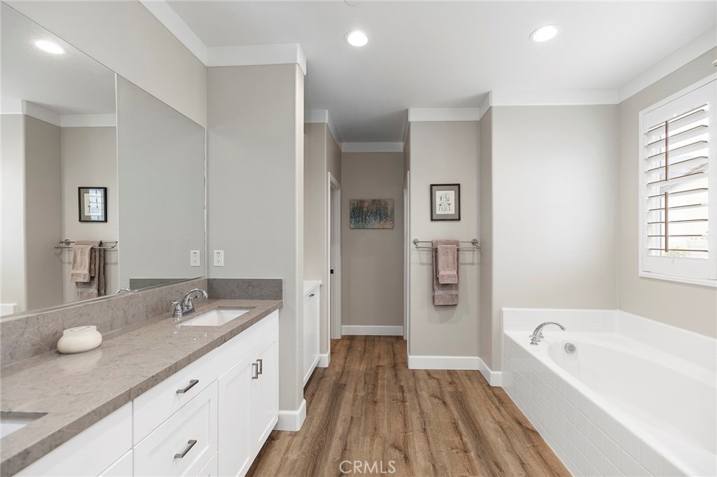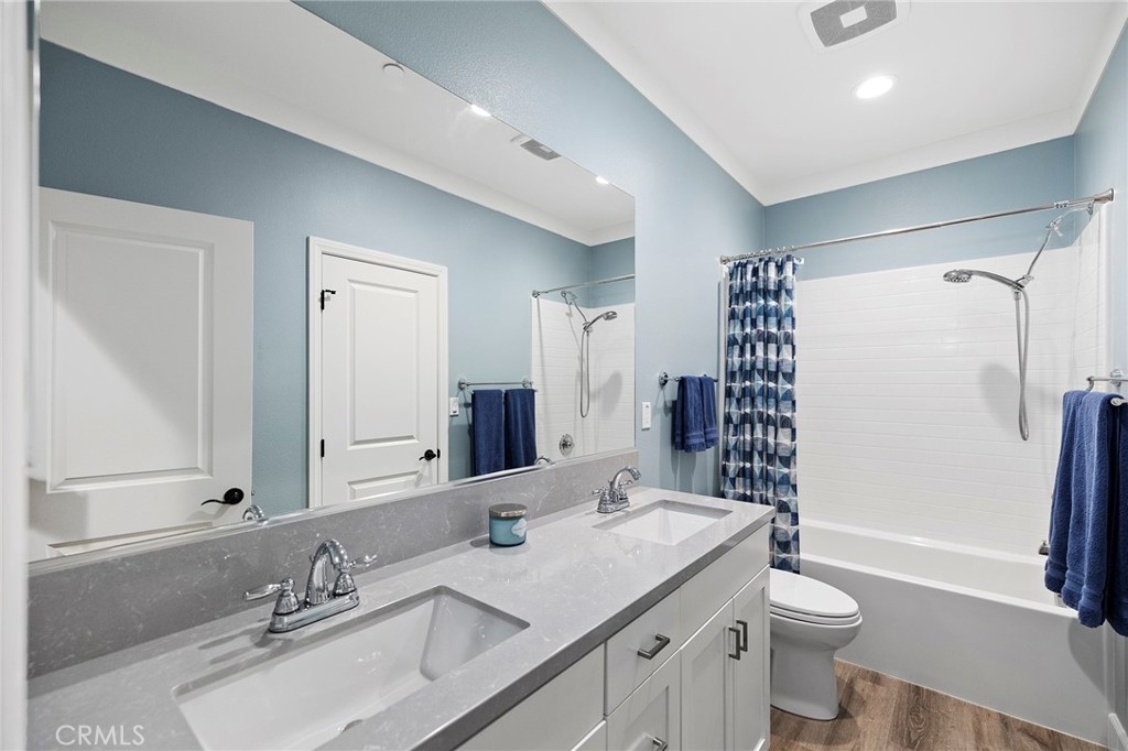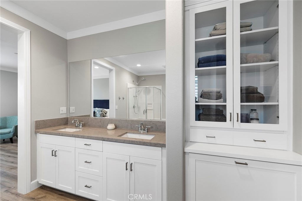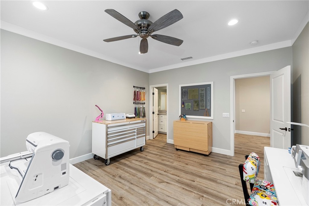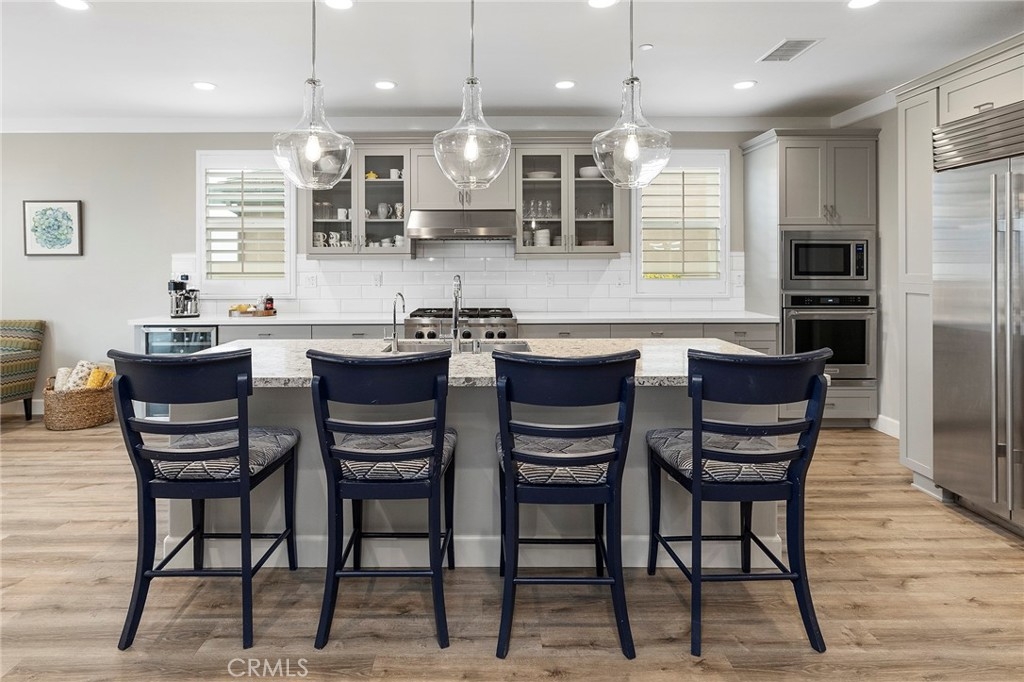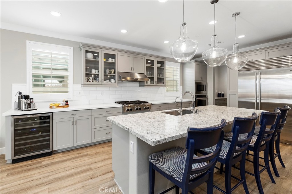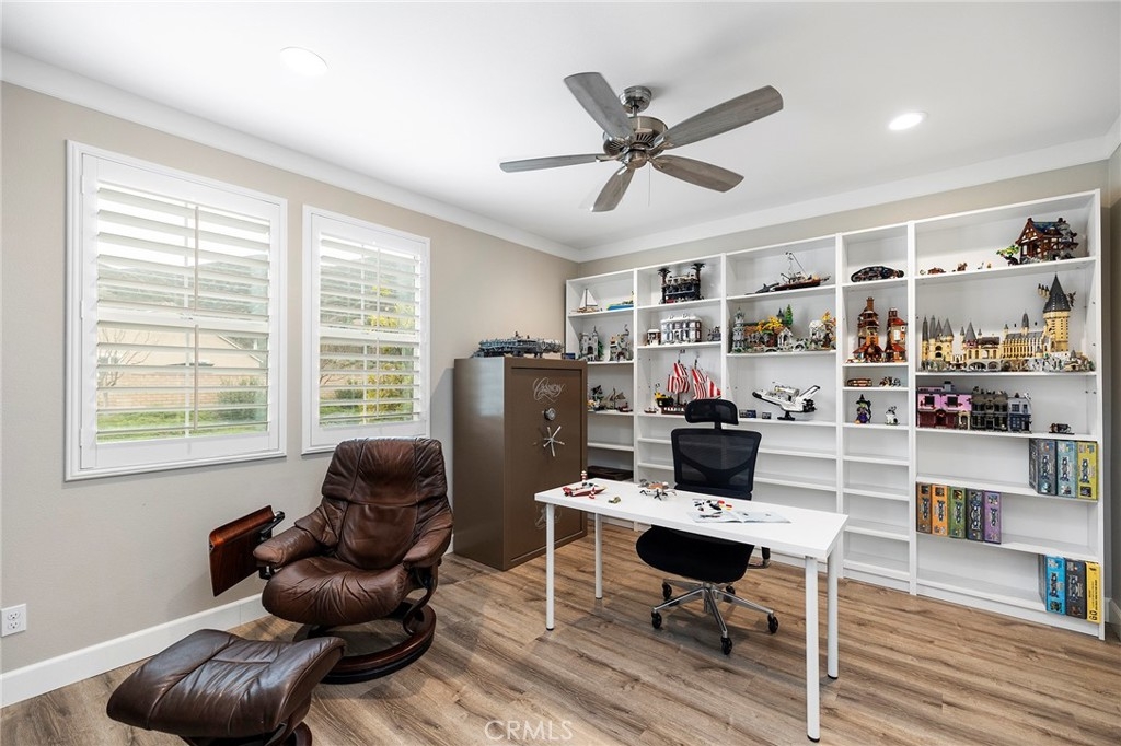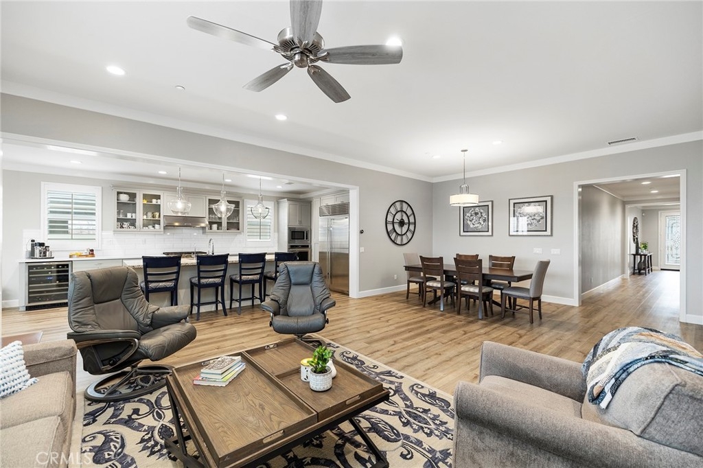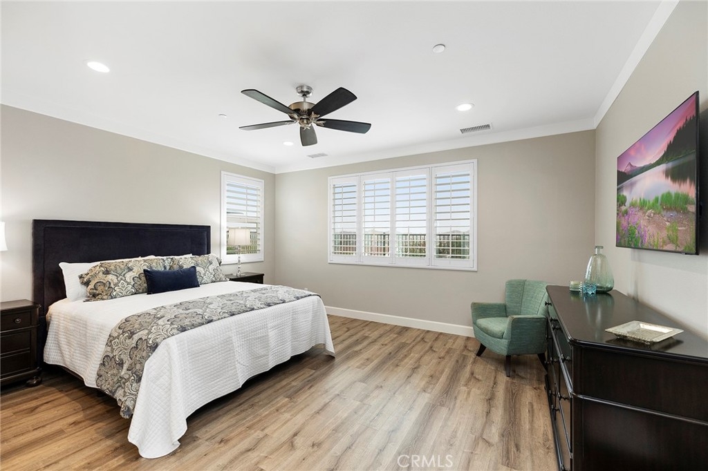VIEWS! VIEWS!! VIEWS!!! Luxurious Single-Story Estate in Gated Province at Audie Murphy Ranch. Discover breathtaking panoramic mountain and city light views from this exquisitely designed 3,000 sq ft single-story residence in Menifee's most prestigious gated community. This spectacular 4-bedroom, 3-bathroom home features a flowing open concept floor plan where the gourmet chef's kitchen seamlessly overlooks an expansive family room and elegant dining area. Refined details include beautiful custom woodwork, soaring ceilings, recessed lighting, designer plantation shutters, crown molding, and premium luxury vinyl plank flooring. A versatile bonus space offers possibilities as a cozy kitchenette or sophisticated seating area. The sumptuous master retreat features an oversized bedroom suite with a spa-inspired bathroom including separate shower, soaking tub, and dual vanity. The space includes a built-in linen closet and impressive walk-in closet with custom built-ins. All secondary bedrooms feature walk-in closets and ceiling fans, with two sharing a well-appointed Jack-and-Jill bathroom. The kitchen is any chef's dream with professional-grade appliances including a SubZero built-in refrigerator with reverse osmosis, professional 6-burner gas cooktop, and premium Miele dishwasher. Enjoy custom shaker cabinets, a spacious walk-in pantry, and butler's pantry. The laundry room includes a refrigerator with reverse osmosis and wash sink. Stay comfortable with the energy-efficient QuietCool whole house fan system. The 3-car tandem garage features cabinet storage and epoxy flooring. Outside, meticulously landscaped grounds showcase mountain vistas, a tranquil fountain, glass-rock fireplace, and low-maintenance artificial turf. Ideally positioned between the 15 and 215 freeways with easy access to shopping and Province's resort-style amenities: pools, spas, sports courts, clubhouse, trails, and skate park.