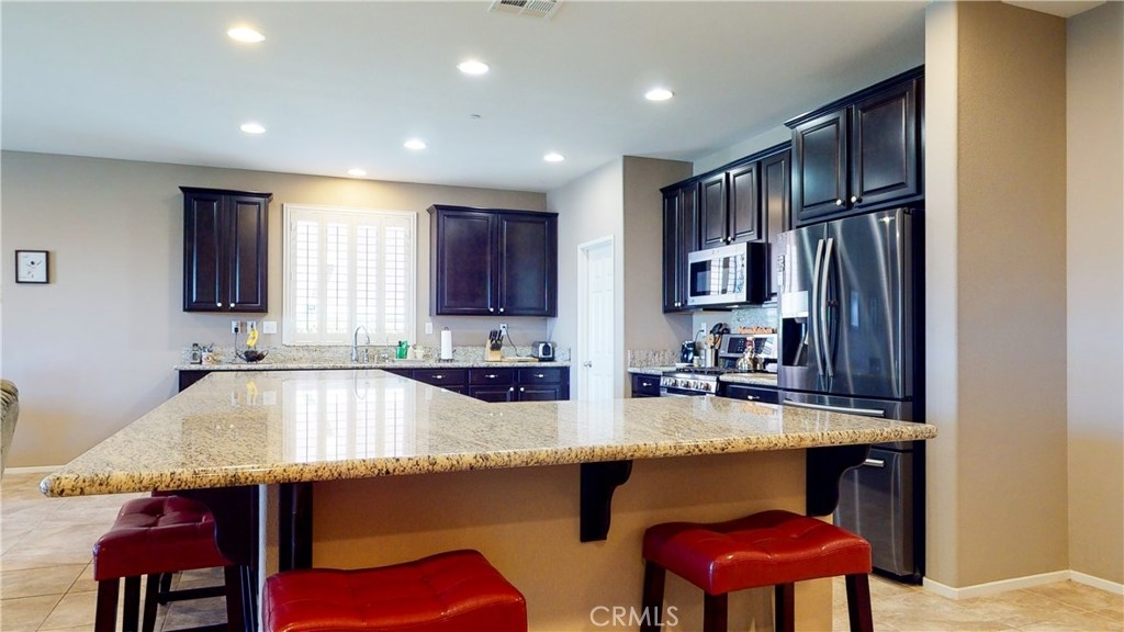 ABSOLUTELY BEAUTIFUL Single Story Audie Murphy Ranch home located in a cul-de-sac. Turnkey 3 bedrooms, Potential 4th bedroom, 2 lovely bathrooms, private location within walking distance to parks. Offers PAID OFF SOLAR SYSTEM and water softener system. Home displays Plantation shutters throughout, neutral colors, fresh paint, recessed lighting, Ceramic tile flooring in all open areas, and carpet in the bedrooms. Featuring a Huge kitchen with a center island/breakfast bar that can seat many, upgraded dark cabinets with self closing drawers, beautifully upgraded stainless appliances, a built-in brand new microwave, granite counters & large walk-in pantry. Kitchen is open to the great room and breakfast nook. Separate formal dining room/den could possibly be converted to a 4th bedroom. Large Master bedroom with lovely bathroom, dual sinks & a vanity, Separate tub and shower & a walk in closet. The other bedrooms also have walk-in closets. The Large laundry room conveniently located in middle of home with plenty shelving and storage. HUGE Pool sized back yard with block wall & vinyl fencing, stained concrete patio with an alumna wood patio cover, ceiling fan and large side yard/dog run with new drip system and bark. Home also features a 2 car attached garage, Whirl pool washer & dryer. Community features amazing walking trails, parks, pools, spas, skate park, new schools, close to shopping and restaurants, freeway access and more!