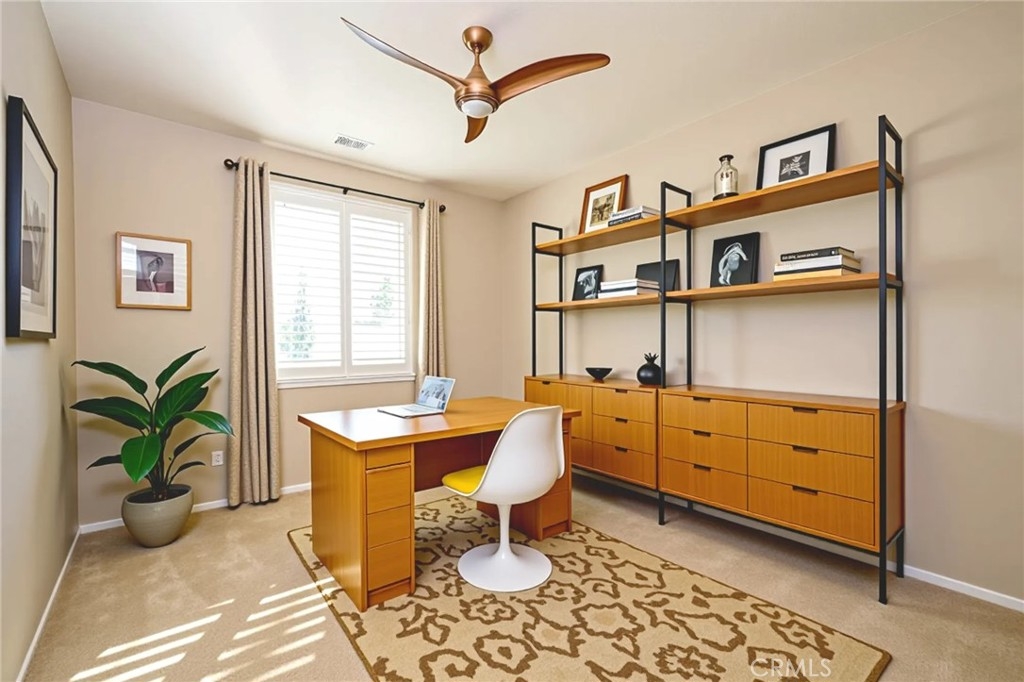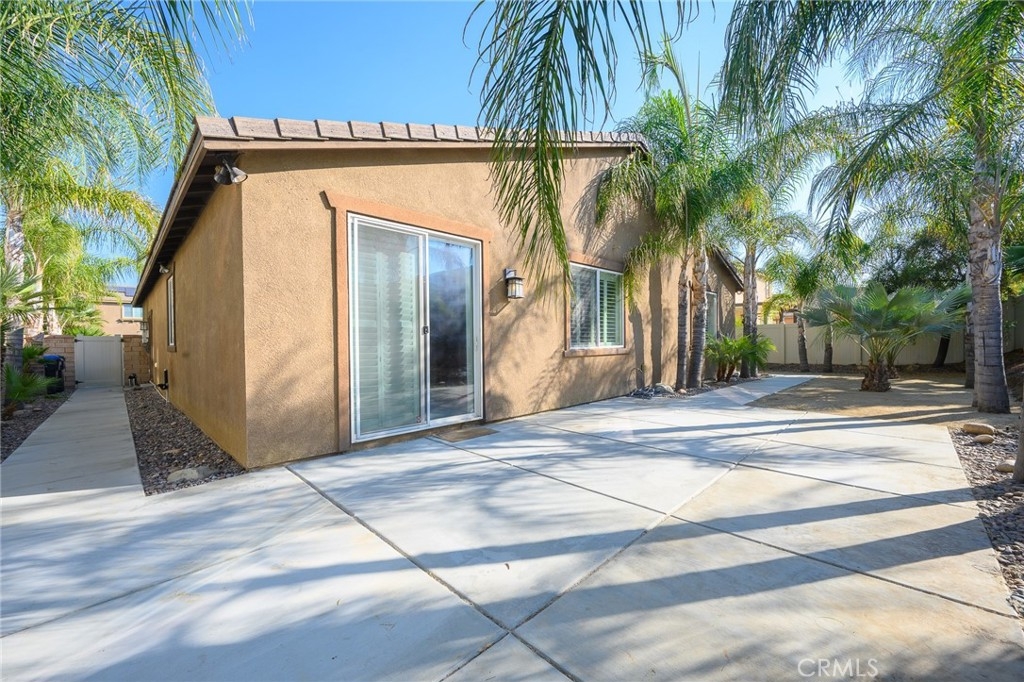 Now priced to sell! Discover resort-style living with everyday comfort in this beautifully upgraded 4-bedroom, 2-bath single-story home in Menifee’s Audie Murphy Ranch. The open-concept design features a bright and spacious great room that flows seamlessly into the dining area and a chef’s kitchen complete with an oversized island, bar seating for 8, designer lighting, and a walk-in pantry large enough to stock two kitchens. The private primary suite offers a peaceful retreat with a spa-inspired bathroom, soaking tub, separate shower, and a generous walk-in closet. Three additional bedrooms provide flexible space for family, guests, or a home office. Enjoy custom window shutters throughout, a roomy laundry/mudroom with extra storage, and direct access to a two-car garage. Step outside to your own backyard escape surrounded by lush tropical landscaping—perfect for relaxing or entertaining. Located in Audie Murphy Ranch, residents enjoy resort-style amenities including pools, parks, trails, and sports fields—all within walking distance of Heron Park, Menifee Skatepark, and the new Hamal Sanchez Sports Park. Move-in ready and solar powered—this home offers comfort, convenience, and community all in one.