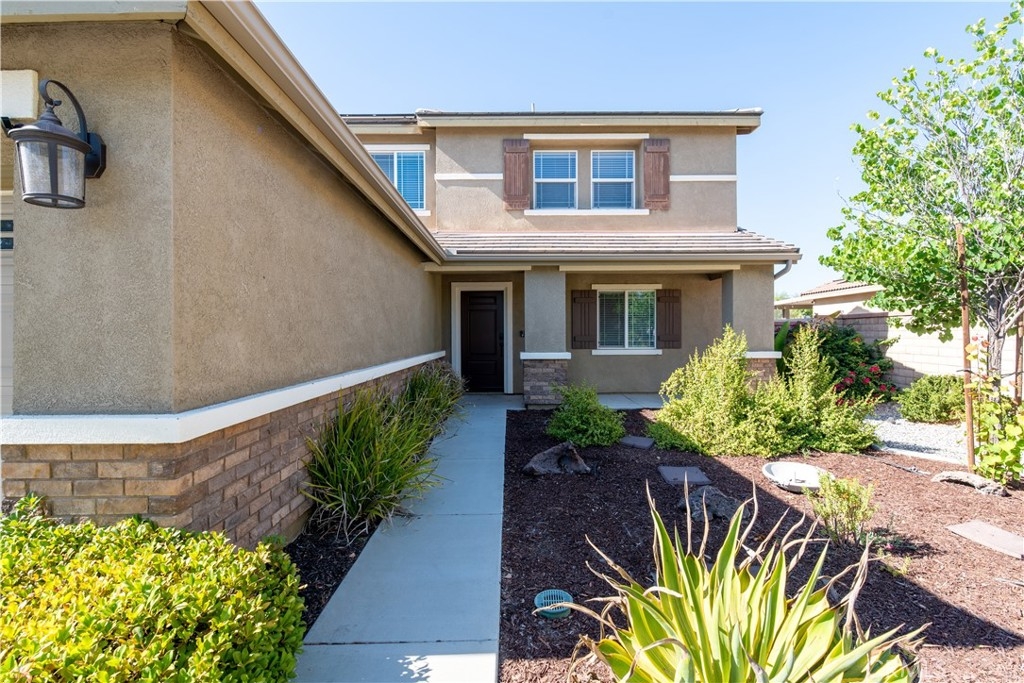 Beautiful SOLAR POWERED 4 bedroom, 2 1/2 bathroom, 2 story home with bonus room and main floor bedroom in the community of Audie Murphy Ranch in Menifee! Enjoy a formal entry with new laminate wood flooring, new carpet, large family room featuring inviting fireplace, and adjacent to the open kitchen with granite countertops, large center island, walk-in pantry, stylish dark wood cabinetry, and spacious dining area. Upstairs highlights a loft, master bedroom suite with walk-in closet, dual vanities in the master bathroom as well as a separate shower and tub. Downstairs, the sliding doors lead to the backyard and patio. HOA amenities include clubhouse, pool, spa, walking trails, and picnic area. Conveniently located to shopping, dining, and easy access to major freeways!