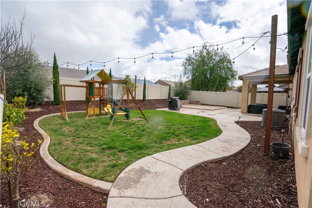 Welcome to your dream sanctuary nestled in the heart of the vibrant city of Menifee, where luxury meets tranquility in the coveted community of Audie Murphy Ranch. Step into an oasis of elegance and comfort, where every corner whispers of relaxation and joy. This gem is a 3 bedroom 2 bath WITH an additional office/den space. This stunning residence is more than just a house; it's a haven where dreams take flight. Set amidst picturesque landscapes and adorned with lush greenery, Audie Murphy Ranch offers a lifestyle of leisure and serenity like no other. Immerse yourself in the beauty of nature as you stroll along scenic walking paths, dive into refreshing swimming pools, and delight in the laughter echoing from playful playgrounds. Convenience is not just a feature; it's a way of life here. With its central location between the 15 and 215 freeways, your commute and adventures are mere moments away. Whether you're embarking on a journey to work, exploring the nearby attractions, or savoring a night out on the town, everything you desire is within easy reach. Opportunities like this are rare jewels waiting to be discovered. Don't let this moment slip through your fingers. Make 25431 Hitch Rail Ln your own personal paradise and embark on a journey of a lifetime. Your dream home awaits—schedule a visit today and immerse yourself in the enchanting allure of Audie Murphy Ranch before this opportunity fades away into the sunset.