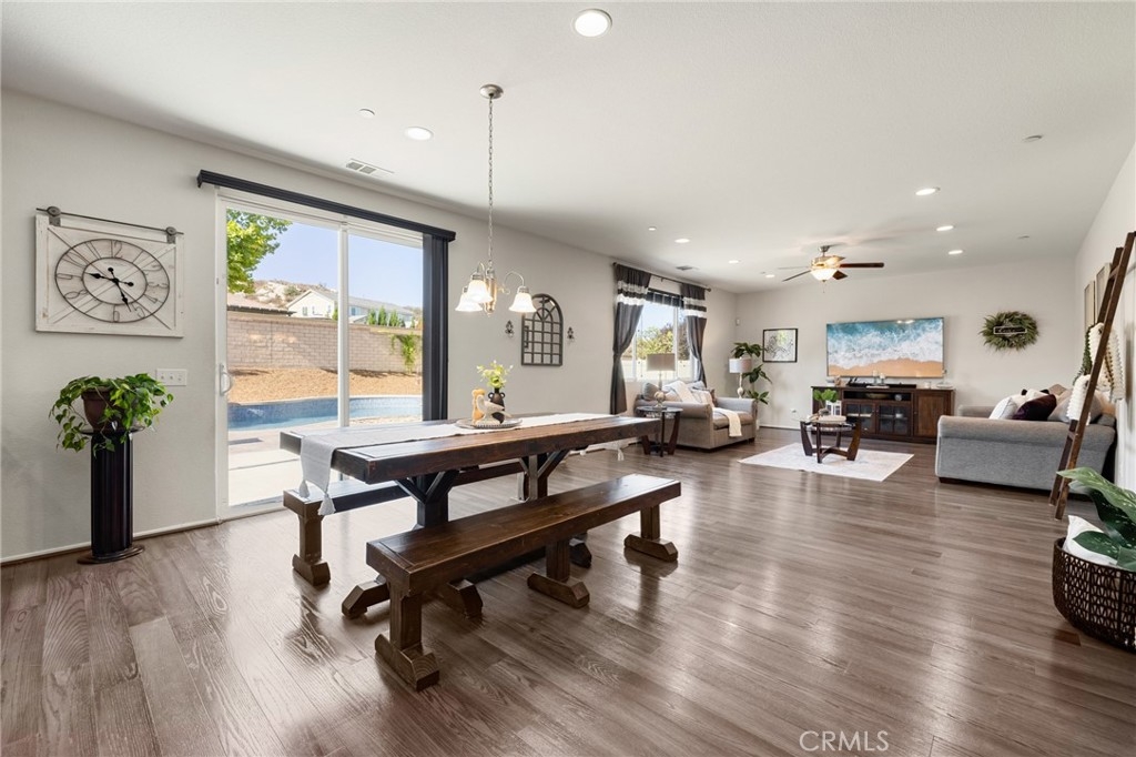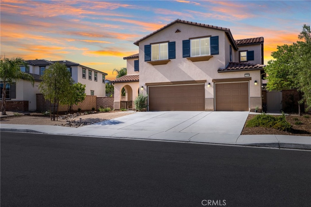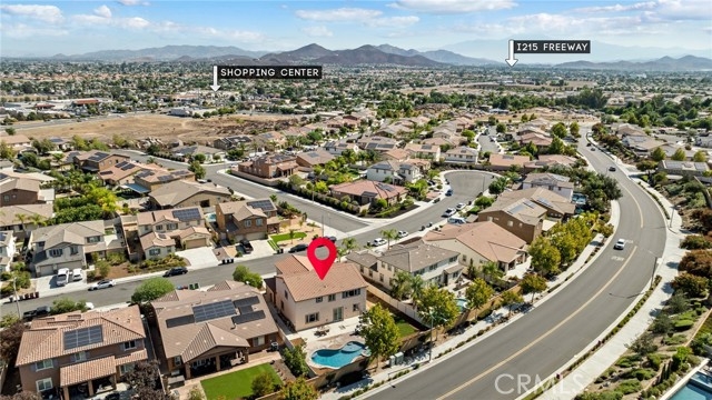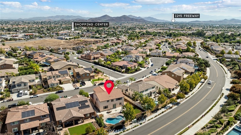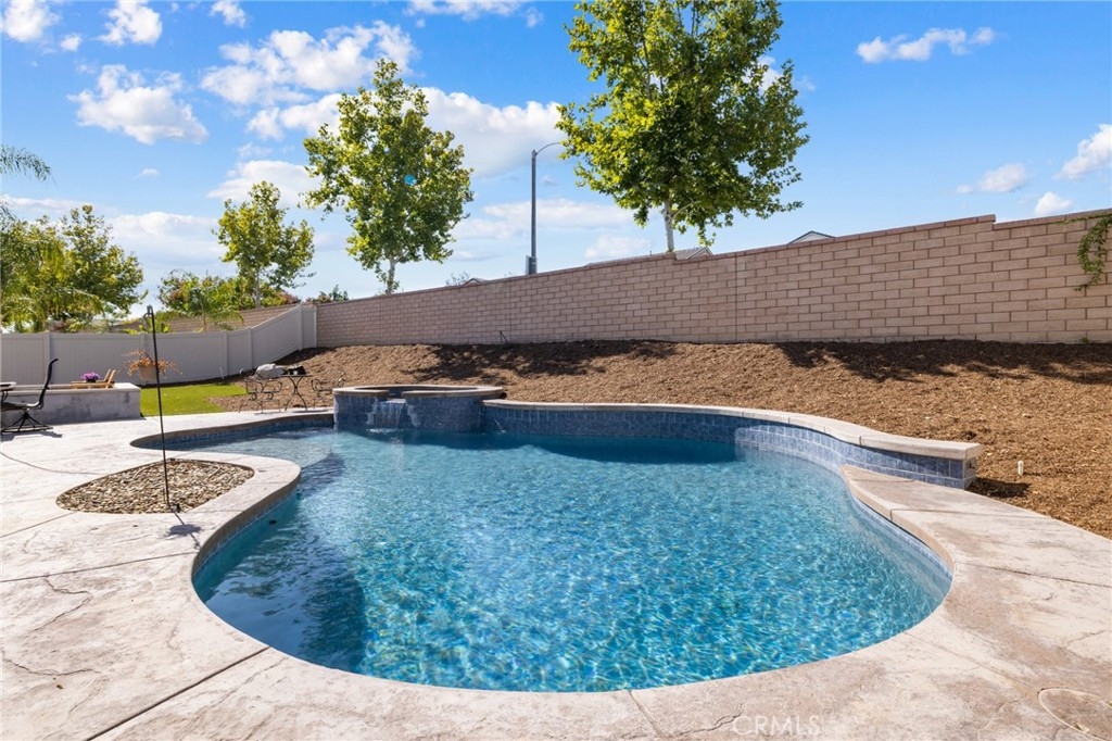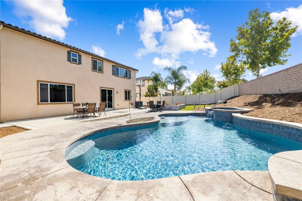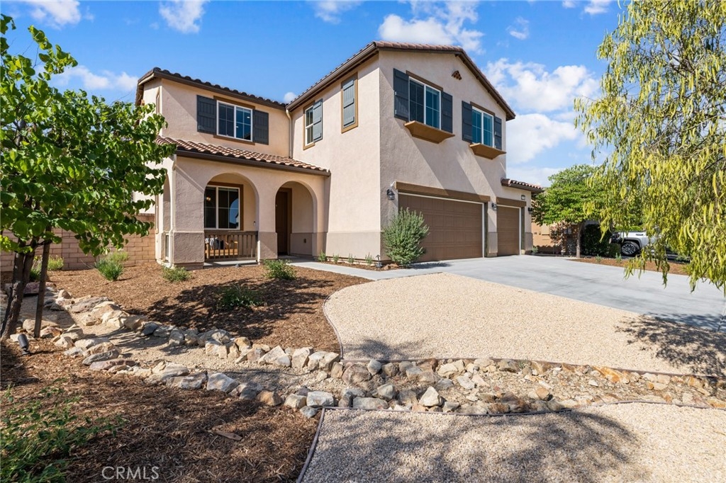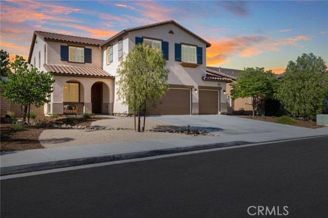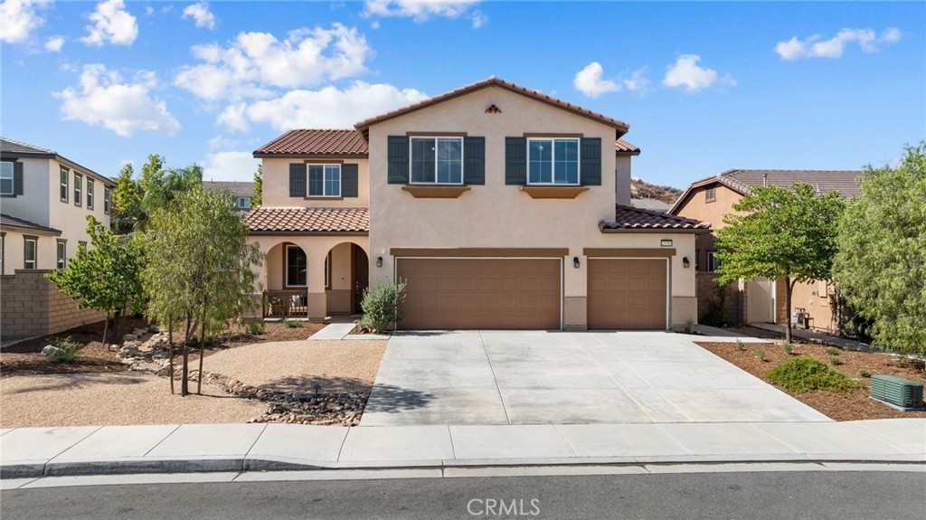 Welcome home to this amazing POOL home located in the prestigious community of Audie Murphy Ranch in Menifee. This exquisite 5 bedroom, 4 bath property offers almost 3500 sqft of living space featuring a loft, a main floor junior suite, 2 main floor bathrooms, 4 bedrooms upstairs, an oversized 9500 sqft lot, 3-car garage, mountain views and drought tolerant landscaping. Being in the Audie Murphy Ranch community this home is just steps away from the award winning Taawila Elementary school, close to trails, the skate park, sports park and within minutes to the freeway and tons of shopping. As you enter the home you are greeted by tall ceilings, recessed lighting, LVP floors, neutral paint and a very desirable floor plan. The Large dining room offers tons of light flooding in from the large windows and flows right into the butler’s pantry boasting granite counters and built-in cabinets situated across from the large walk-in pantry. The chef’s kitchen is appointed with granite counters, double ovens, 5 burner stove, and eat up island which faces the large eating area and right into the grand Great Room. The main floor offers a spacious junior suite boasting new carpet, a ceiling fan, standard closet and attached bath featuring a single vanity and walk-in shower. The second main floor bath is a powder room perfect for guests just off the entrance to the 3-car garage offering hookups for a soft water system. The second story boasts a massive loft, the three large secondary bedrooms, all featuring new carpet, gorgeous views and two of the three have walk-in closets. They all share a secondary bath boasting a dual vanity and shower tub combo. The oversized primary bedroom offers new carpet, a ceiling fan, tons of natural light, views of the yard and an attached bath boasting a dual vanity, seating area, soaking tub, shower and large walk-in closet. The 9500sqft entertainers dream yard features concrete for entertaining, a saltwater pool with baja step, built-in spa, large area with artificial turf, a built-in seating area perfect for a fire pit and tons of space to continue building your dream yard. The community also features pools, spa, club house, meeting and banquet rooms and the new Kathryn Newport Middle school. The home is located between the 15 and 215 freeways, 20 minutes from the Temecula Wineries, an hour to San Diego, Orange County and LA. This is a home you do not want to miss!