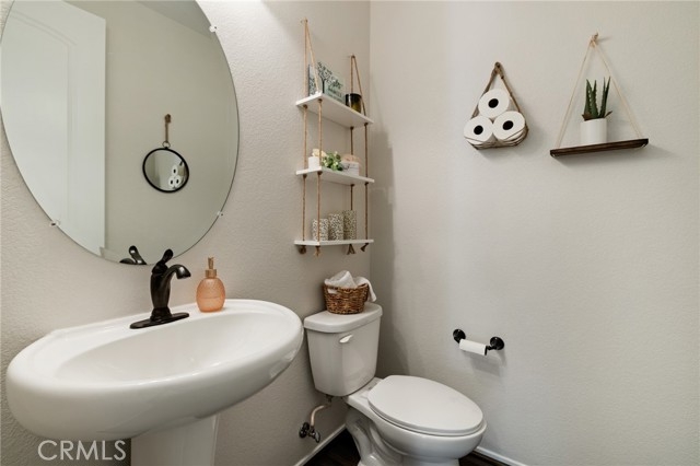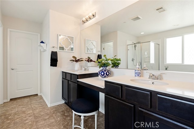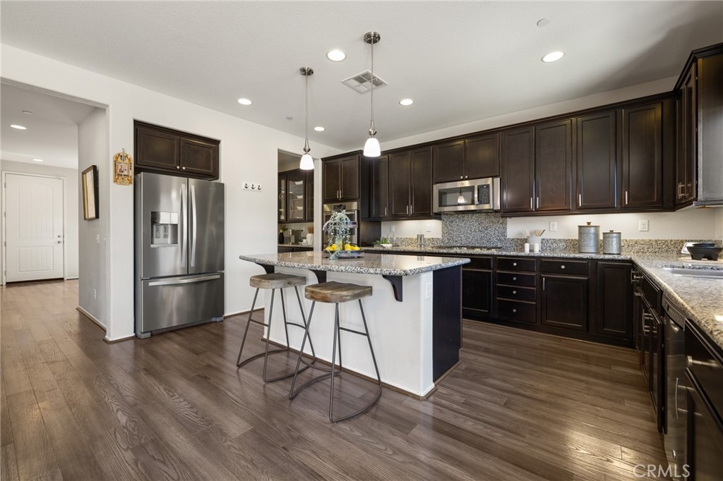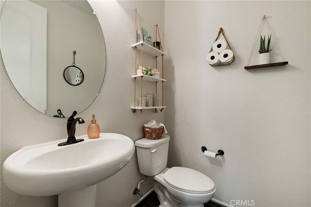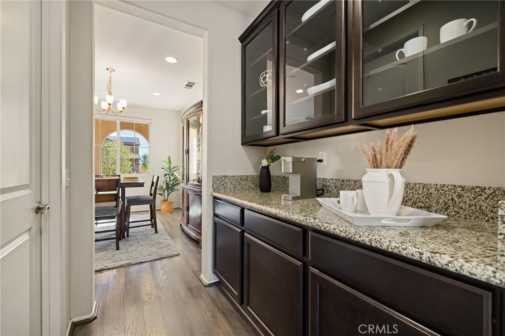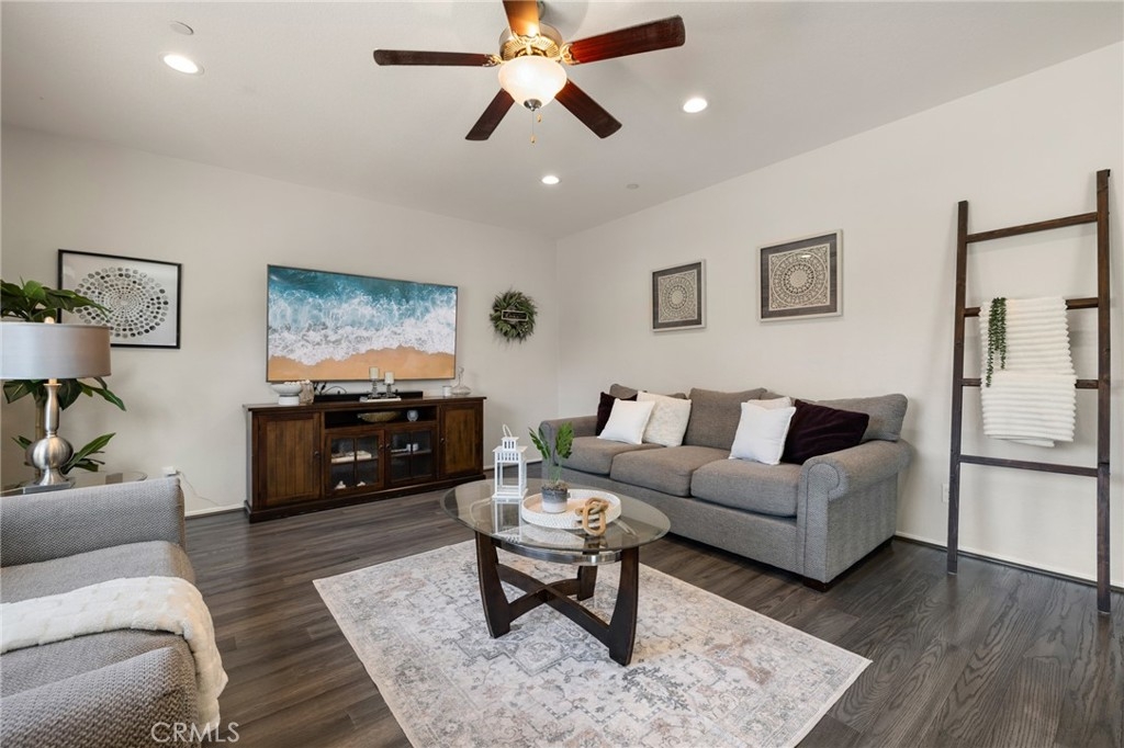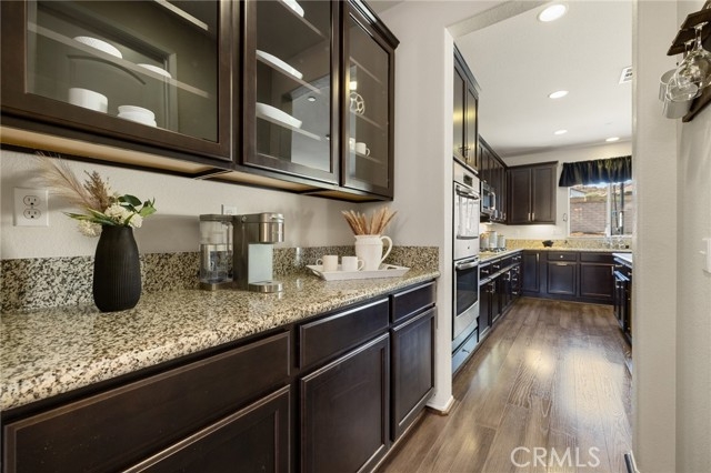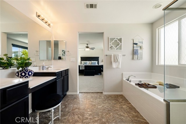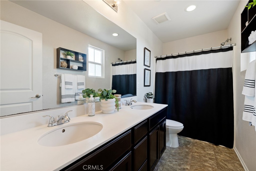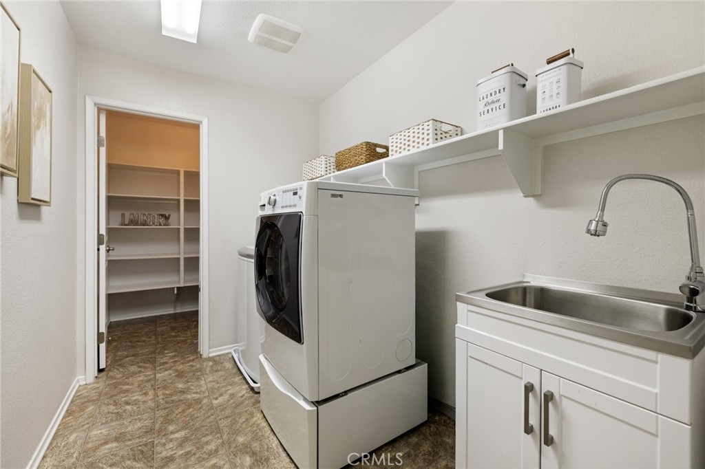 Welcome home to this amazing POOL home located in the prestigious community of Audie Murphy Ranch in Menifee. This exquisite 5 bedroom, 4 bath property offers almost 3500 sqft of living space featuring a loft, a main floor junior suite, 2 main floor bathrooms, 4 bedrooms upstairs, an oversized 9500 sqft lot, 3-car garage, mountain views and drought tolerant landscaping. Being in the Audie Murphy Ranch community this home is just steps away from the award winning Taawila Elementary school, close to trails, the skate park, sports park and within minutes to the freeway and tons of shopping. As you enter the home you are greeted by tall ceilings, recessed lighting, LVP floors, neutral paint and a very desirable floor plan. The Large dining room offers tons of light flooding in from the large windows and flows right into the butler’s pantry boasting granite counters and built-in cabinets situated across from the large walk-in pantry. The chef’s kitchen is appointed with granite counters, double ovens, 5 burner stove, and eat up island which faces the large eating area and right into the grand Great Room. The main floor offers a spacious junior suite boasting new carpet, a ceiling fan, standard closet and attached bath featuring a single vanity and walk-in shower. The second main floor bath is a powder room perfect for guests just off the entrance to the 3-car garage offering hookups for a soft water system. The second story boasts a massive loft, the three large secondary bedrooms, all featuring new carpet, gorgeous views and two of the three have walk-in closets. They all share a secondary bath boasting a dual vanity and shower tub combo. The oversized primary bedroom offers new carpet, a ceiling fan, tons of natural light, views of the yard and an attached bath boasting a dual vanity, seating area, soaking tub, shower and large walk-in closet. The 9500sqft entertainers dream yard features concrete for entertaining, a saltwater pool with baja step, built-in spa, large area with artificial turf, a built-in seating area perfect for a fire pit and tons of space to continue building your dream yard. The community also features pools, spa, club house, meeting and banquet rooms and the new Kathryn Newport Middle school. The home is located between the 15 and 215 freeways, 20 minutes from the Temecula Wineries, an hour to San Diego, Orange County and LA. This is a home you do not want to miss!