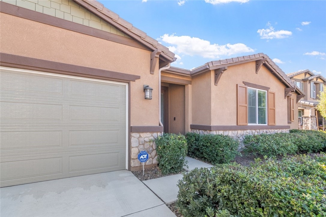 Beautiful Turnkey single story home in the sought after, award winning, Audie Murphy Ranch Master Planned Community. This home features 4 bedrooms, 3 bathrooms, office, great room, 2 car garage and paid off 10 panel solar system located in a cul-de-sac. This highly desired 'Julia' floorplan with just under 3,000 sq. ft. of useable space has a fantastic layout. There is a gourmet kitchen which includes an oversized island with pendant lighting and double oven, with 2nd prep kitchen--second sink, cabinets, and prep area with massive walk in pantry. Kitchen has espresso stained cabinets with granite counter tops, brushed nickel pulls, and stainless steel appliances. Spacious office off of the kitchen which makes a convienent work space. Master bedroom suite is bright and open with spacious bathroom--separate vanities with granite countertops, walk in shower, garden tub and master closet that you will love. Secondary bedrooms have spacious closets that share a jack and jill bath with separate vanities that have granite countertops with a tub/ shower combo. Off of the formal dining room is a California room/covered patio--perfect for entertaining. The laundry room has upper and lower cabinets along with a sink and quartz countertops. Home has tons of upgrades including custom beige paint throughout, oversized tile floors throughout common areas, with soft plush carpet in bedrooms, family, dining room with ceiling fans in family room, and bedrooms, 2" faux wood window coverings throughout, built in alarm system, and whole house fan. Neat and clean 2 car attached garage, great for storage, with the tankless water heater. Backyard is ready for entertaining with built in patio cover, concrete hardscape, decorative pergolas, custom rock planters and easy to maintain landscaping that is all on a drip system, block wall and vinyl fencing, all very private with no neighbors behind. Audie Murphy Ranch has so many amenities including two Clubhouse areas--The Plunge and The Ranch House that have swimming pools, spas and meeting areas, skate parks, sports courts, playgrounds/ parks, walking trails, community center, and so much more.