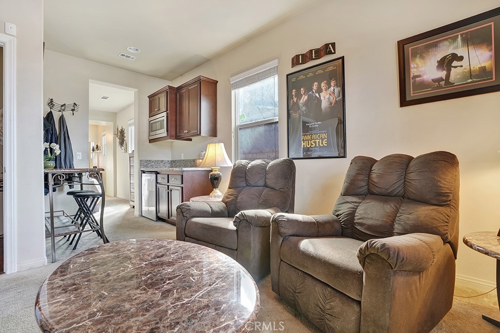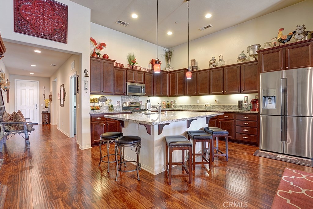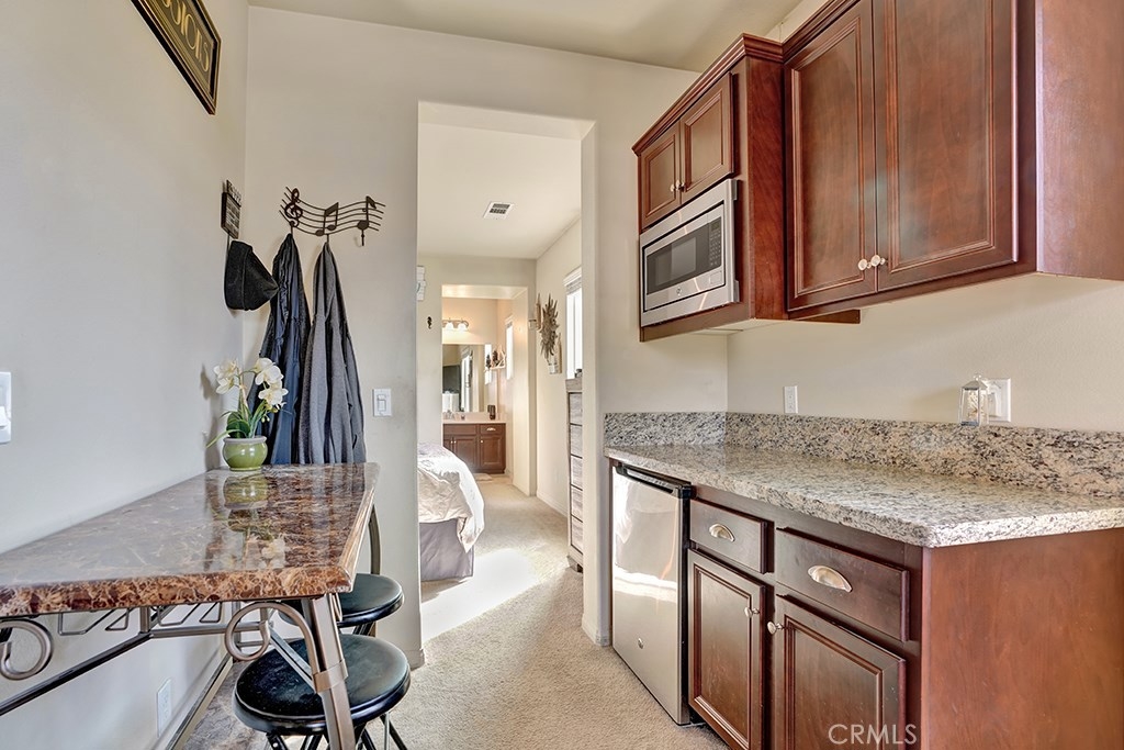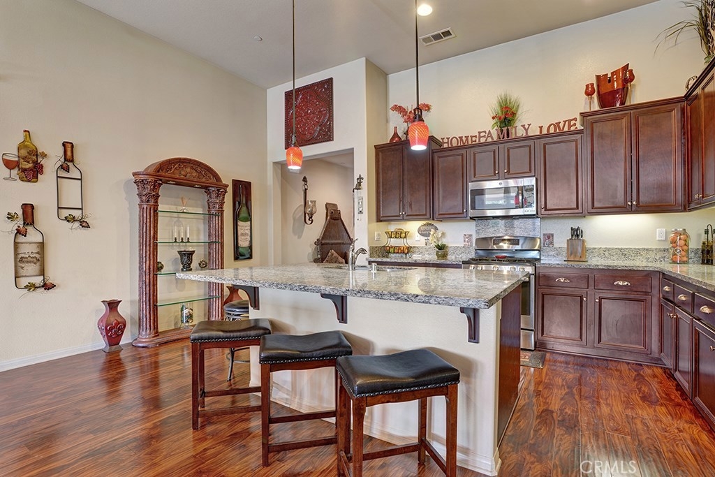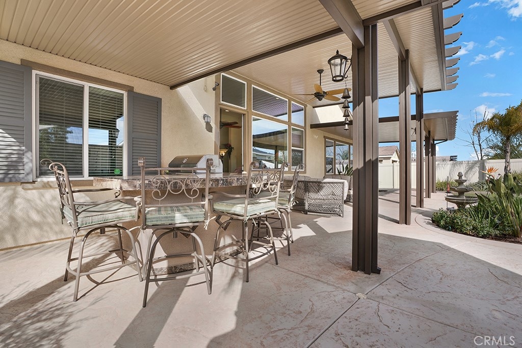 Beautiful ONE STORY in the highly desirable AUDIE MURPHY RANCH COMMUNITY. Step into the front door and immediately EXPERIENCE THE AMAZING UPGRADES this home has to offer. As you walk down the hall on the gorgeous WOOD FLOORING, you'll find the LARGE KITCHEN opens into the dining and living area in this spacious OPEN FLOOR PLAN. The VAULTED CEILINGS, RECESSED LIGHTING and UPGRADED KITCHEN are the PERFECT combination FOR ENTERTAINING. Like to ENTERTAIN OUTSIDE ? Move effortlessly through to the OUTDOOR BBQ ISLAND AND BAR area and relax under the new PATIO COVER. Enjoy the peacefulness of a PERFECTLY LANDSCAPED BACKYARD complete with ARTIFICIAL TURF, CUSTOM CONCRETE and water feature.Back inside you will enjoy and EXTRA LARGE MASTER bedroom WITH 2 WALK IN CLOSETS as well as a full size bedroom and bathroom that includes it’s own WALK IN CLOSET. A large room, currently used as an office would make a GREAT 4TH BEDROOM. In addition, there is an ATTACHED GRANNY SUITE/CASITA perfect for multi-gen households, a roommate, or even just for an extra private space for your guests. THIS IS A MUST SEE. This home has been so well cared for that even the gutters have been upgraded. TOO MANY additional UPGRADES to MENTION. On top of it all The community this BEAUTIFUL HOME is located in offers AMENITIES that INCLUDE a POOL, SPA, MULTIPLE PLAYGROUNDS, SPORTS PARKS, SKATE PARK, WALKING TRAILS AND A CLUBHOUSE making it the perfect place to call home. SCHEDULE YOUR SHOWING TODAY !