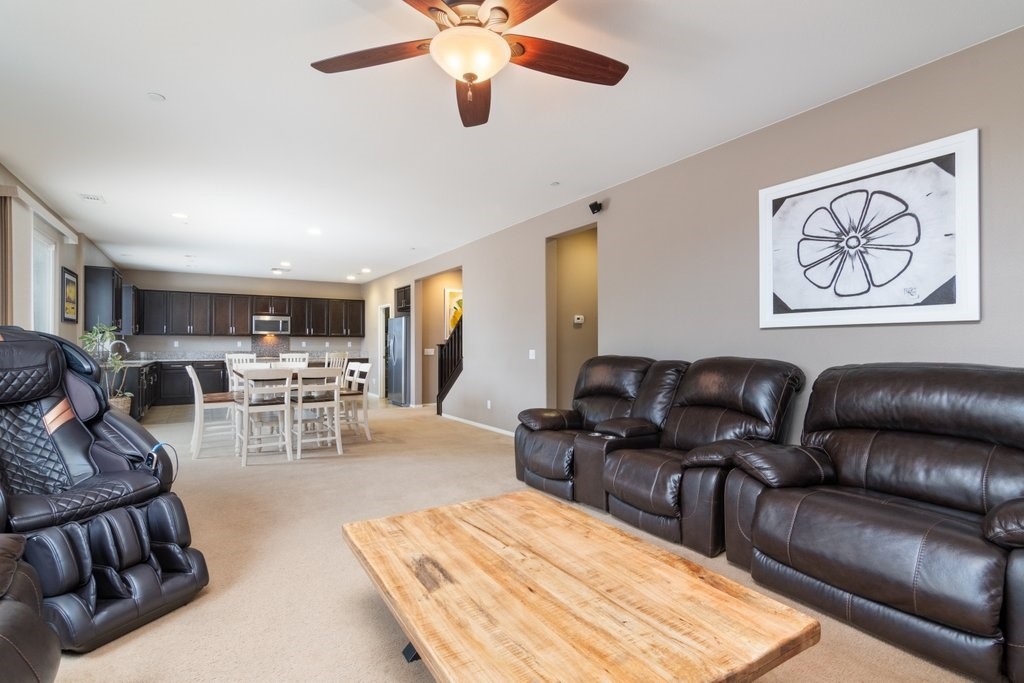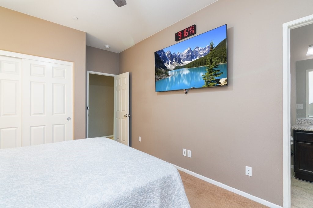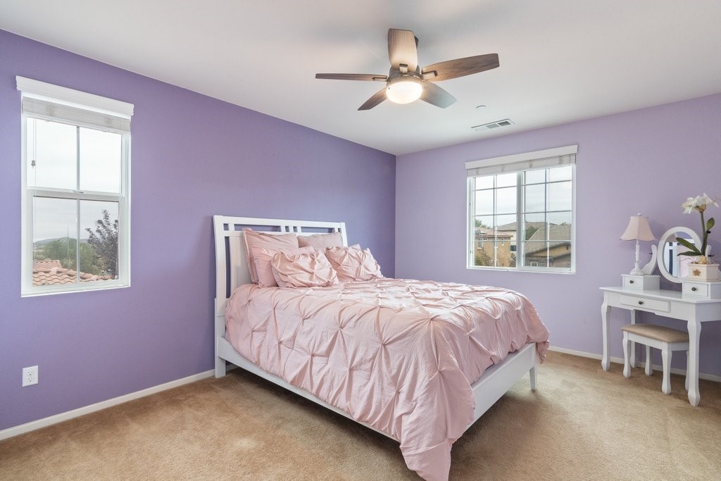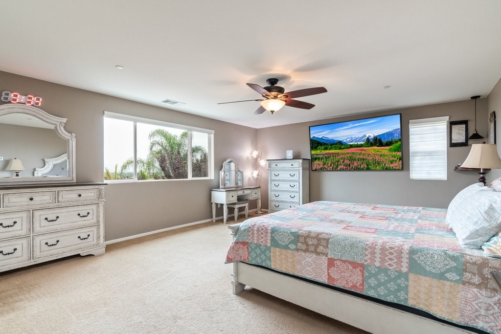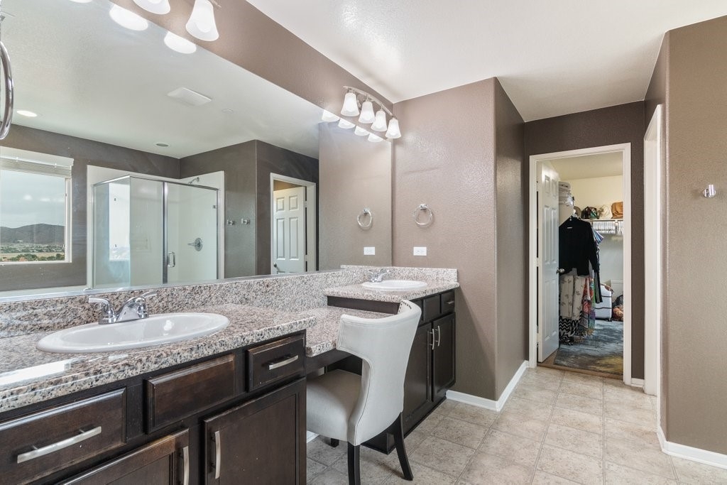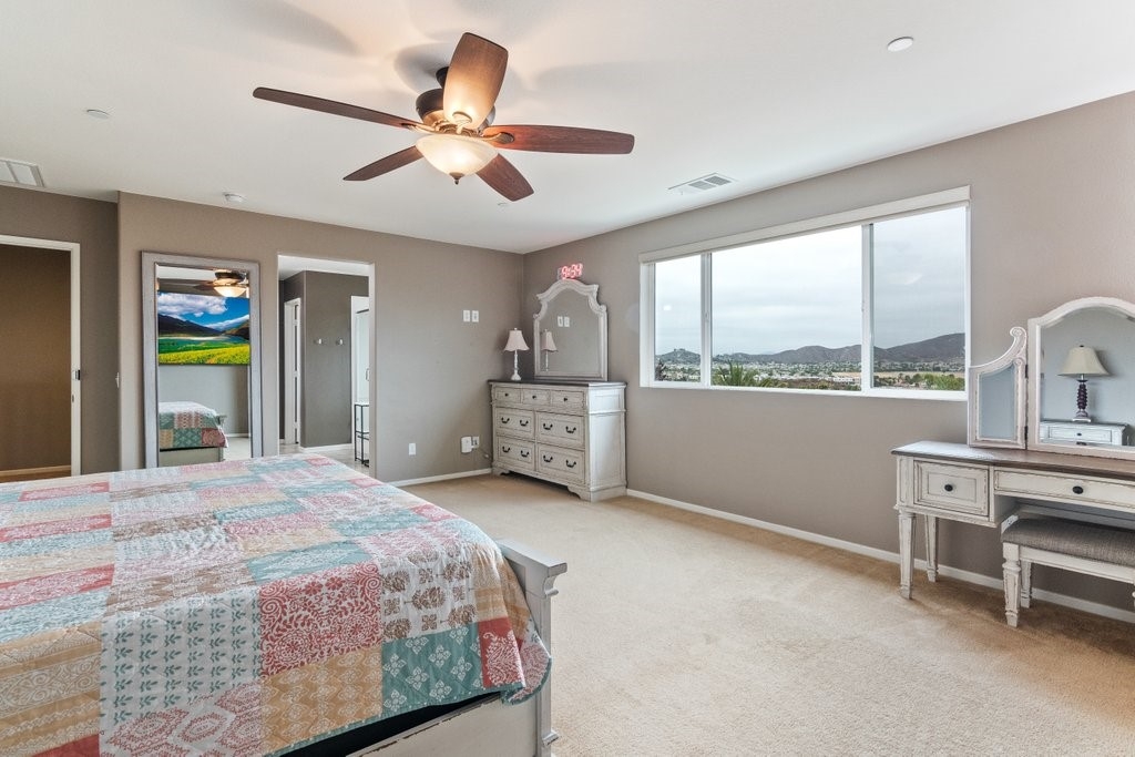 Spanning over 3,400 sq. ft of living space on over 9,500 sq. ft lot, every inch of this property is the epitome of attention to detail and master of craftsmanship. Step inside where you are greeted by an open floor plan and soaring ceilings with lots of natural light let in. The inviting and spacious main family room flaunts an open-concept that connects to the kitchen, and the kitchen itself is a chef's delight featuring granite countertops, stainless steel appliances, reverse-osmosis water filtration, a sizable walk-in pantry, and a large granite island positioned to take in the stunning views of the city and mountains, making everyday living and entertaining a joy. And for added convenience, all main floor window blinds are motorized with a remote control, so opening your blinds to enjoy the city and mountain scenes has never been easier. Also on the main floor, you’ll find a private bedroom with its own full bathroom, excellent for guests or multi-generational living. Upstairs, you'll be greeted with a very generous loft, perfect for entertaining your friends and family with your pool table or your very own home theater. You'll also appreciate that two of the bedrooms upstairs contain their own large walk-in closets, ideally suited for that growing family. The oversized laundry room is also complete with its own convenient walk-in linen closet. The expansive primary master bedroom is complete with, once again, your picturesque view, a massive walk-in closet and a bath featuring a separate tub and shower, nicely complemented with a double-sink granite vanity. And when you step outside you will delight in the immaculate backyard, where the outstanding view provides the perfect backdrop for relaxation, gatherings, and memories. And finally, as part of the Audie Murphy Ranch community, you’ll enjoy resort-style amenities including two large swimming pools, playgrounds, sport courts, and a recreational room.