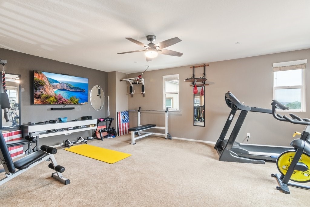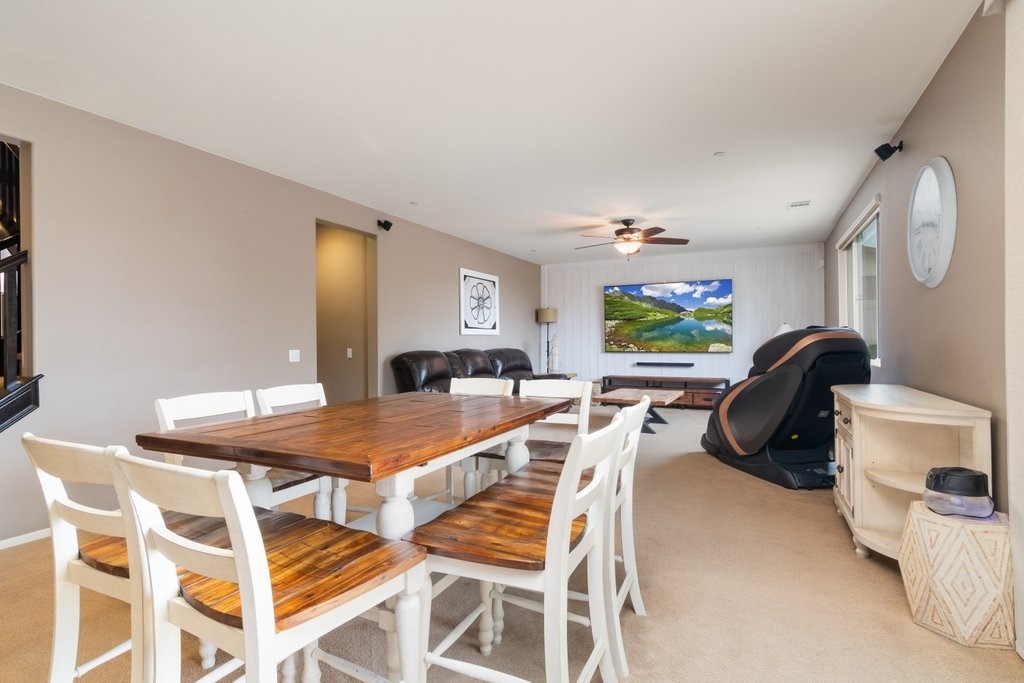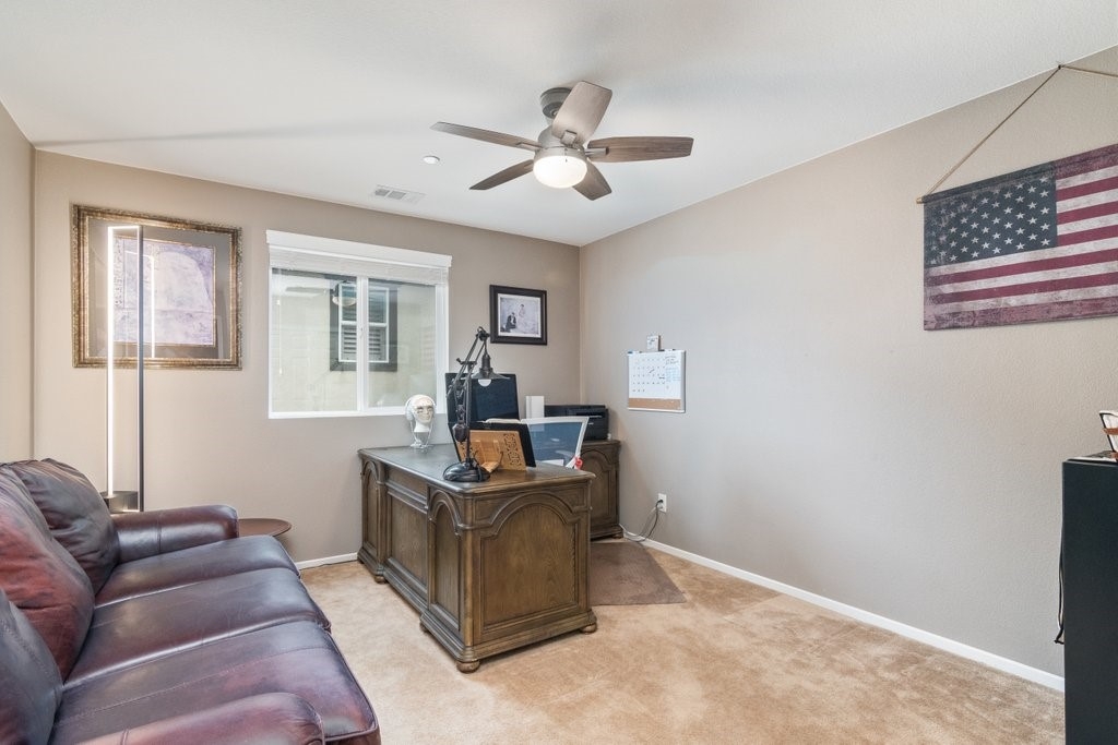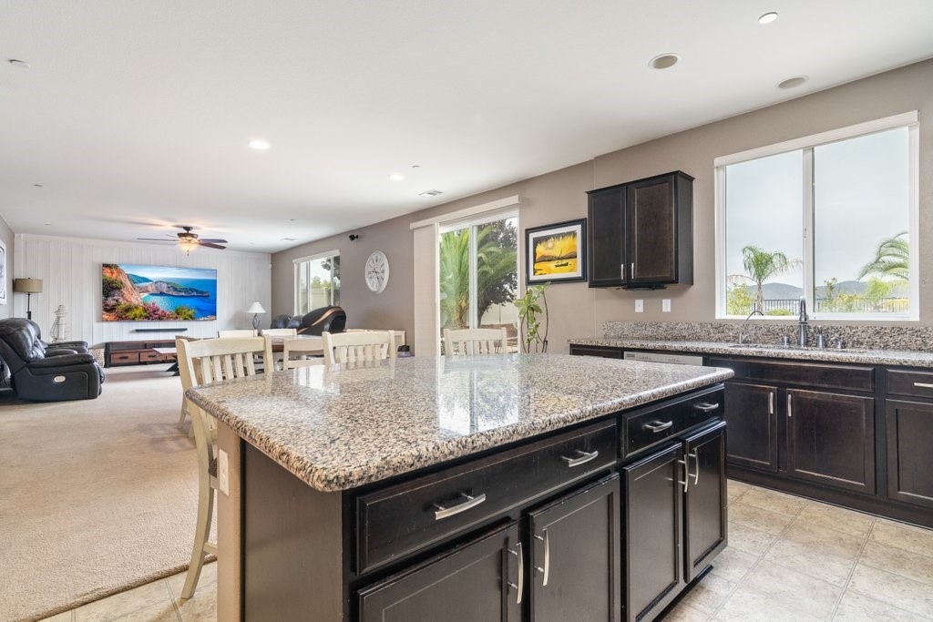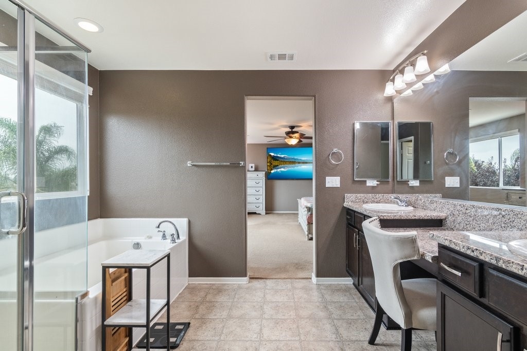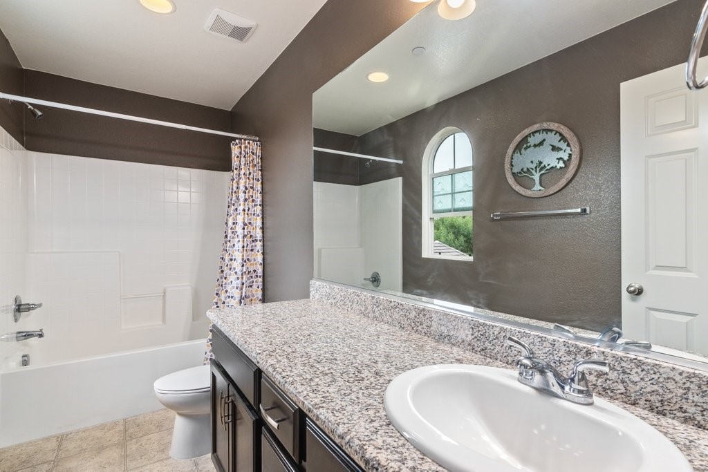 Spanning over 3,400 sq. ft of living space on over 9,500 sq. ft lot, every inch of this property is the epitome of attention to detail and master of craftsmanship. Step inside where you are greeted by an open floor plan and soaring ceilings with lots of natural light let in. The inviting and spacious main family room flaunts an open-concept that connects to the kitchen, and the kitchen itself is a chef's delight featuring granite countertops, stainless steel appliances, reverse-osmosis water filtration, a sizable walk-in pantry, and a large granite island positioned to take in the stunning views of the city and mountains, making everyday living and entertaining a joy. And for added convenience, all main floor window blinds are motorized with a remote control, so opening your blinds to enjoy the city and mountain scenes has never been easier. Also on the main floor, you’ll find a private bedroom with its own full bathroom, excellent for guests or multi-generational living. Upstairs, you'll be greeted with a very generous loft, perfect for entertaining your friends and family with your pool table or your very own home theater. You'll also appreciate that two of the bedrooms upstairs contain their own large walk-in closets, ideally suited for that growing family. The oversized laundry room is also complete with its own convenient walk-in linen closet. The expansive primary master bedroom is complete with, once again, your picturesque view, a massive walk-in closet and a bath featuring a separate tub and shower, nicely complemented with a double-sink granite vanity. And when you step outside you will delight in the immaculate backyard, where the outstanding view provides the perfect backdrop for relaxation, gatherings, and memories. And finally, as part of the Audie Murphy Ranch community, you’ll enjoy resort-style amenities including two large swimming pools, playgrounds, sport courts, and a recreational room.
