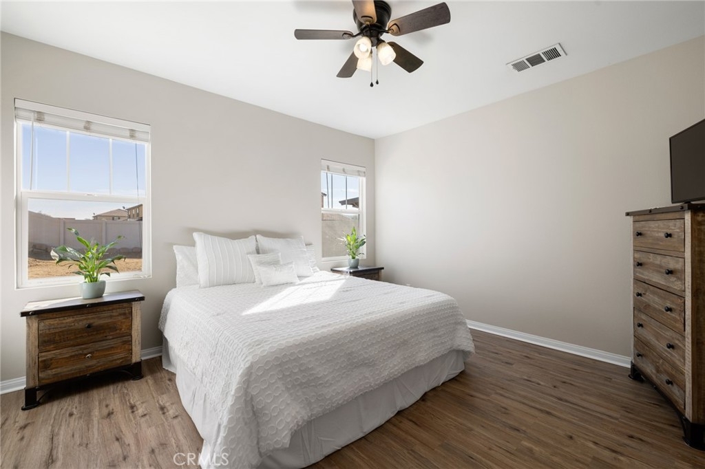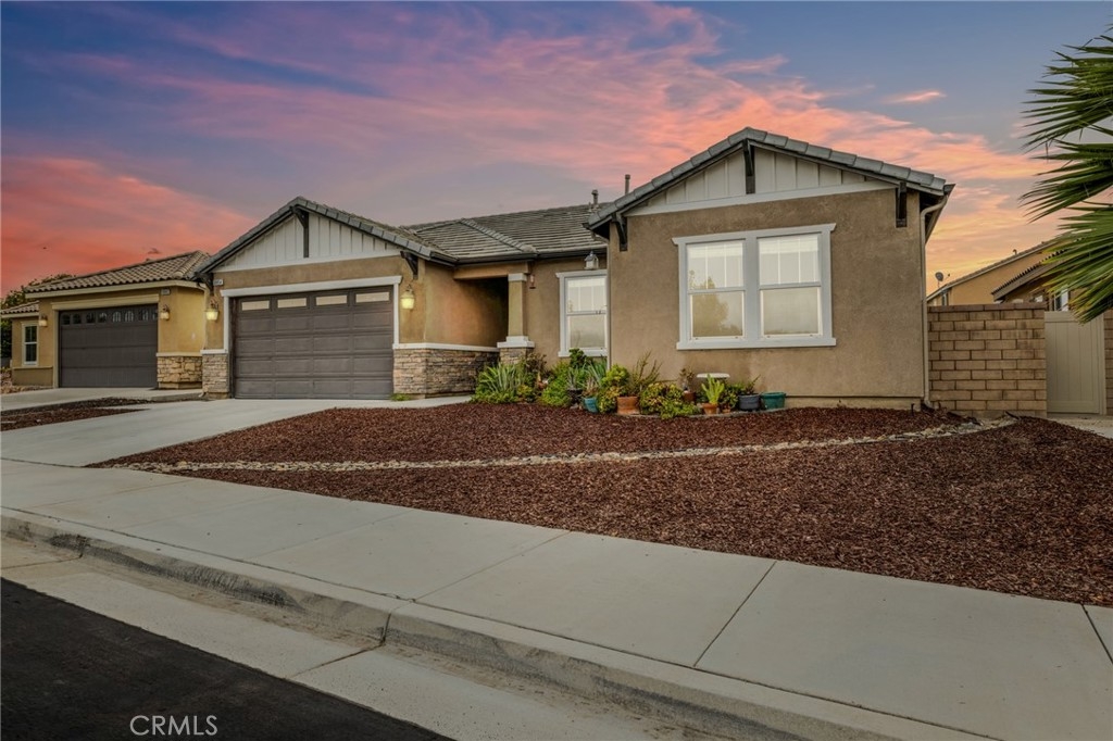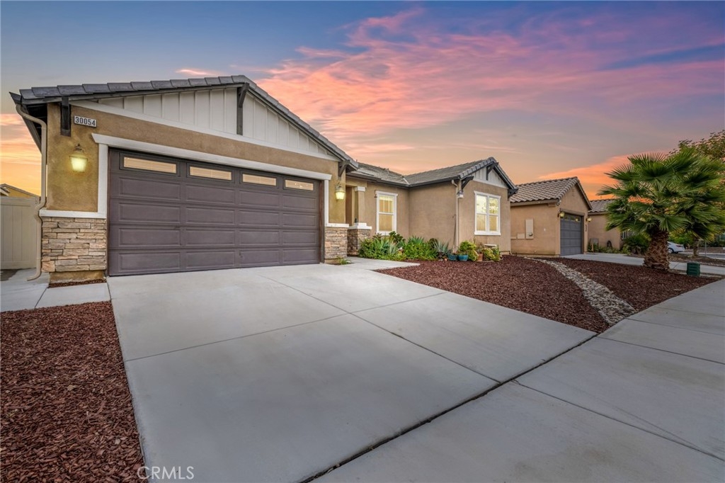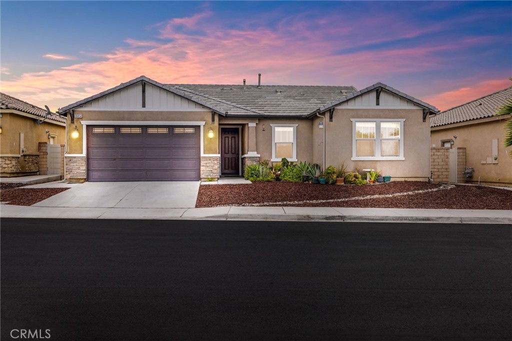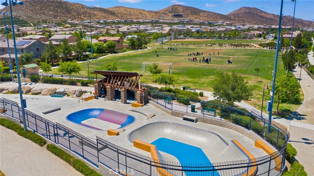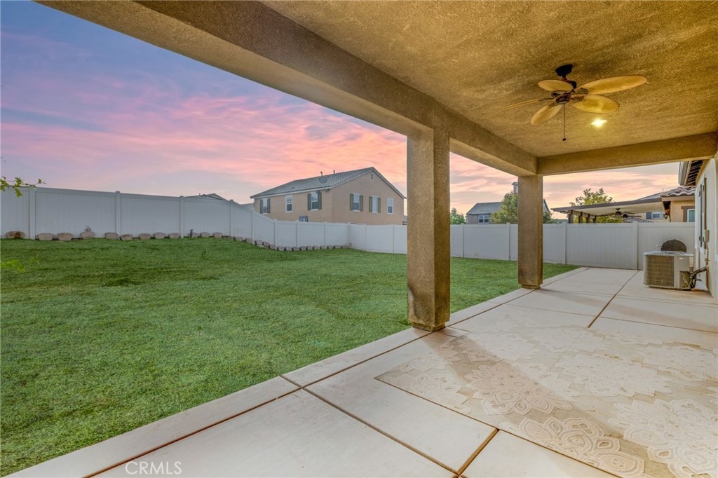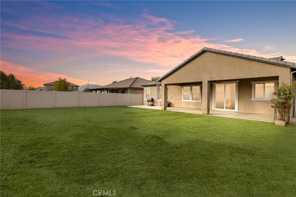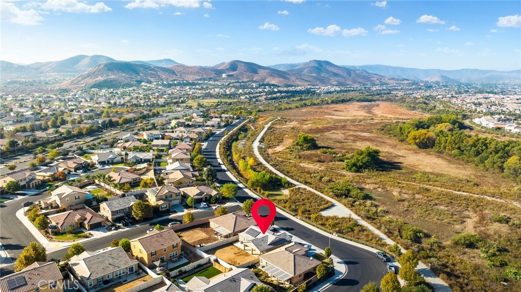 Welcome home to the most inviting single story home available in Audie Murphy Ranch in Menifee featuring a POOL SIZED LOT and OWNED SOLAR. The property is located right across from the amazing Salt Creek Reserve which features the communities hiking and biking trails, and centrally located between both the Elementary and Middle school with easy access for walking. As you enter the 3-bedroom 2 bath property you are greeted by brand new neutral interior paint, high white baseboards, tile floors throughout, recessed lighting and an open floor plan making the 1500sqft home feel spacious and inviting! The Great room has large windows allowing tons of natural light to flood the home and has enough space to add a fireplace and the decor of your dreams! The gorgeous kitchen is appointed with granite counters, white cabinets, stainless steel appliances, and a walk-in pantry with access to the 2-car garage. The amazing floor plan features 3 spacious bedrooms, of which the two secondary bedrooms face the front of the home with LVP floors, mirrored closets with large windows allowing tons of natural light to flood the rooms. The two share a secondary bath featuring a single vanity with quartz counters, shower/tub combo and tile floors. Down the hall is the spacious laundry room boasting storage and a wash sink. The gorgeous master boasts LVP floors, large windows, a walk-in closet, and an attached bath featuring tile floors, dual quartz counter vanity, linen closet, walk-in super shower, and a walk-in closet. The entertainer’s yard is large enough to build your dream pool, or an amazing yard sure to wow the neighbors! It's a blank slate ready to be transformed into the yard of your dreams with a built-in large California Room featuring recessed lighting and a ceiling fan with concrete surrounding the back and side yards with dog runs ready to go! The community features pools, spa, sport courts, hiking and biking trails, skate park, club house, meeting and banquet rooms, with the award winning Taawila Elementary school and brand-new Kathryn Newport Middle school, super close to shopping and in between the 15 and 215 freeways. DO NOT MISS THIS ONE!