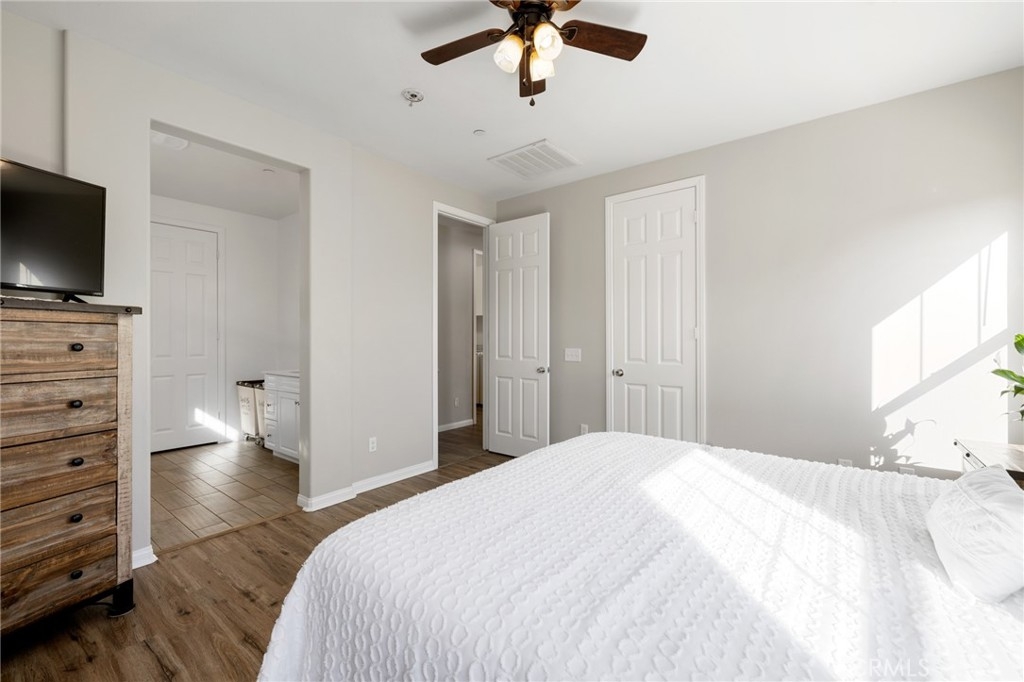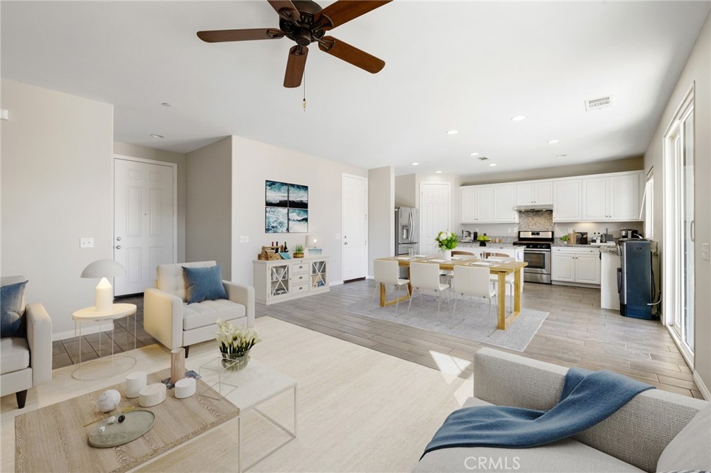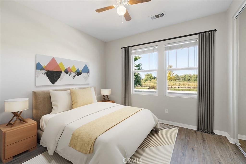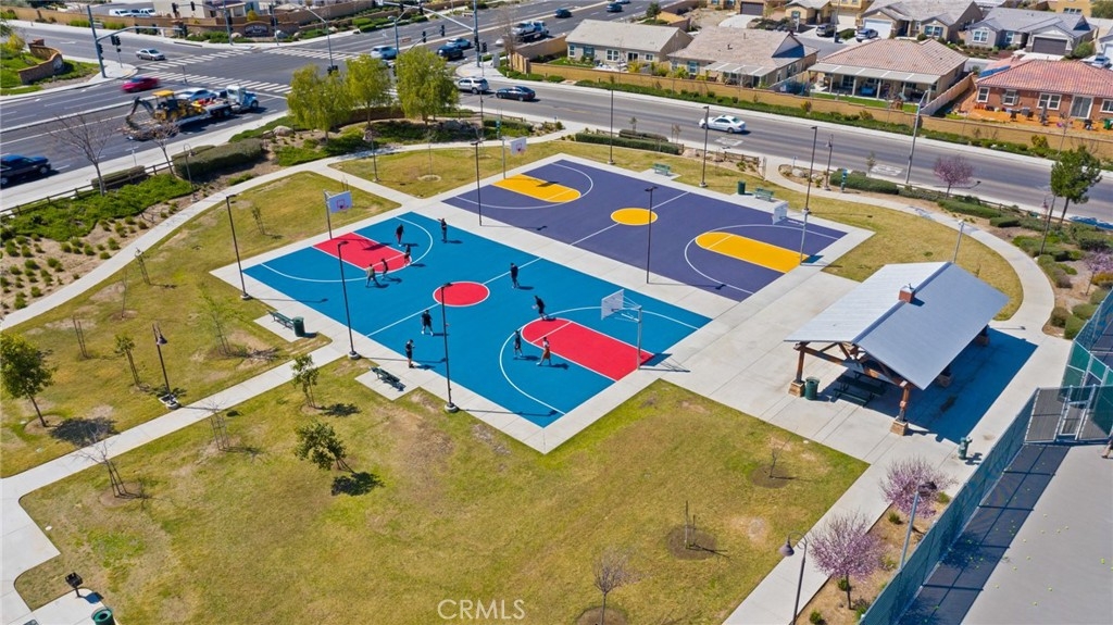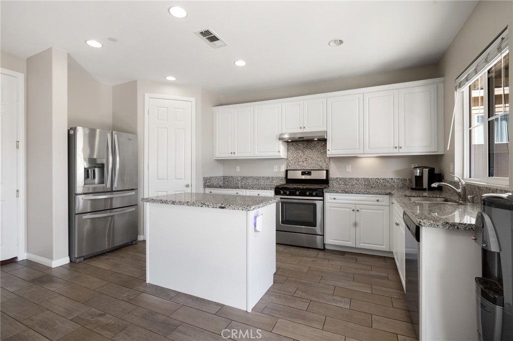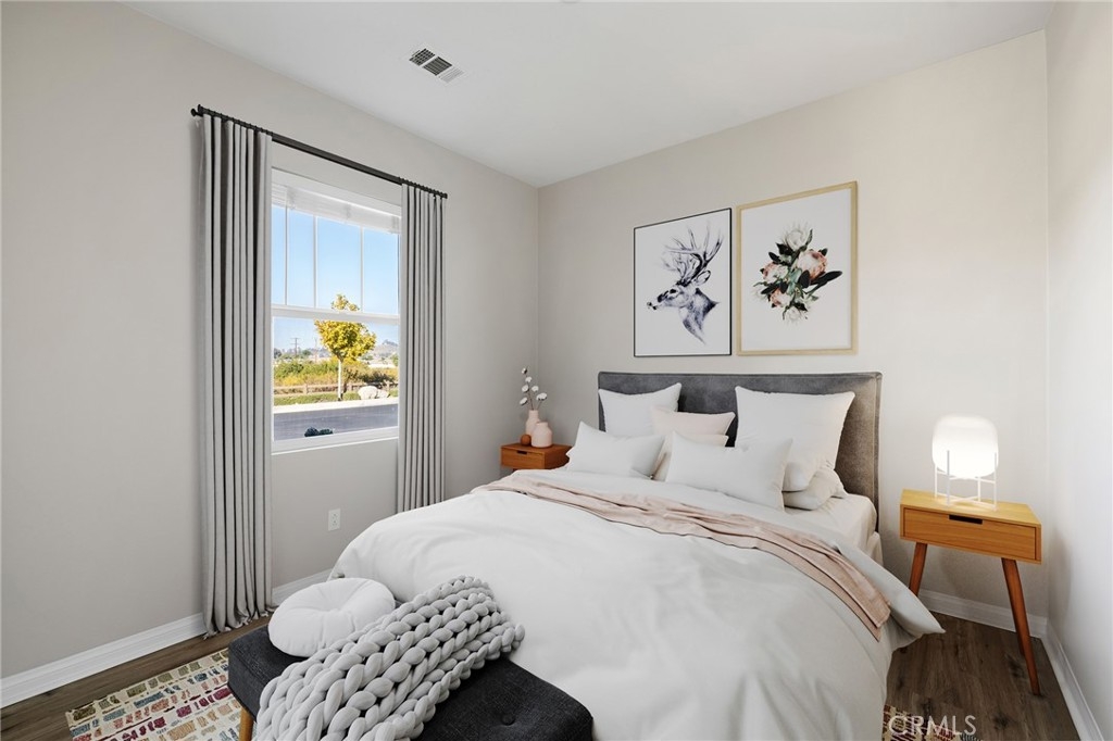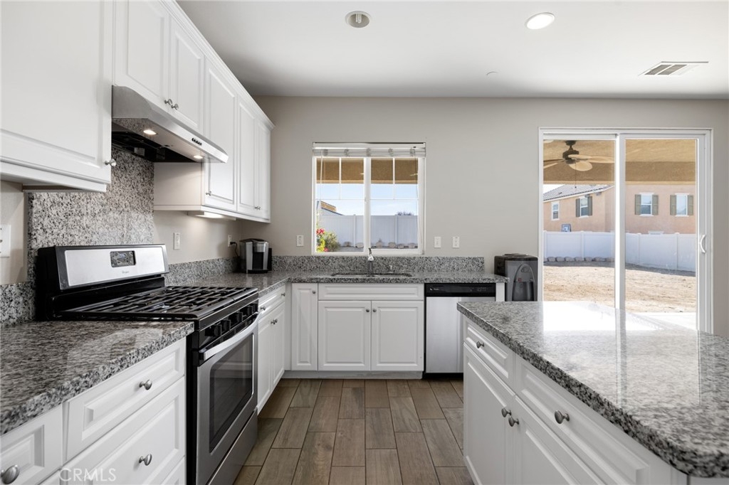 Welcome home to the most inviting single story home available in Audie Murphy Ranch in Menifee featuring a POOL SIZED LOT and OWNED SOLAR. The property is located right across from the amazing Salt Creek Reserve which features the communities hiking and biking trails, and centrally located between both the Elementary and Middle school with easy access for walking. As you enter the 3-bedroom 2 bath property you are greeted by brand new neutral interior paint, high white baseboards, tile floors throughout, recessed lighting and an open floor plan making the 1500sqft home feel spacious and inviting! The Great room has large windows allowing tons of natural light to flood the home and has enough space to add a fireplace and the decor of your dreams! The gorgeous kitchen is appointed with granite counters, white cabinets, stainless steel appliances, and a walk-in pantry with access to the 2-car garage. The amazing floor plan features 3 spacious bedrooms, of which the two secondary bedrooms face the front of the home with LVP floors, mirrored closets with large windows allowing tons of natural light to flood the rooms. The two share a secondary bath featuring a single vanity with quartz counters, shower/tub combo and tile floors. Down the hall is the spacious laundry room boasting storage and a wash sink. The gorgeous master boasts LVP floors, large windows, a walk-in closet, and an attached bath featuring tile floors, dual quartz counter vanity, linen closet, walk-in super shower, and a walk-in closet. The entertainer’s yard is large enough to build your dream pool, or an amazing yard sure to wow the neighbors! It's a blank slate ready to be transformed into the yard of your dreams with a built-in large California Room featuring recessed lighting and a ceiling fan with concrete surrounding the back and side yards with dog runs ready to go! The community features pools, spa, sport courts, hiking and biking trails, skate park, club house, meeting and banquet rooms, with the award winning Taawila Elementary school and brand-new Kathryn Newport Middle school, super close to shopping and in between the 15 and 215 freeways. DO NOT MISS THIS ONE!