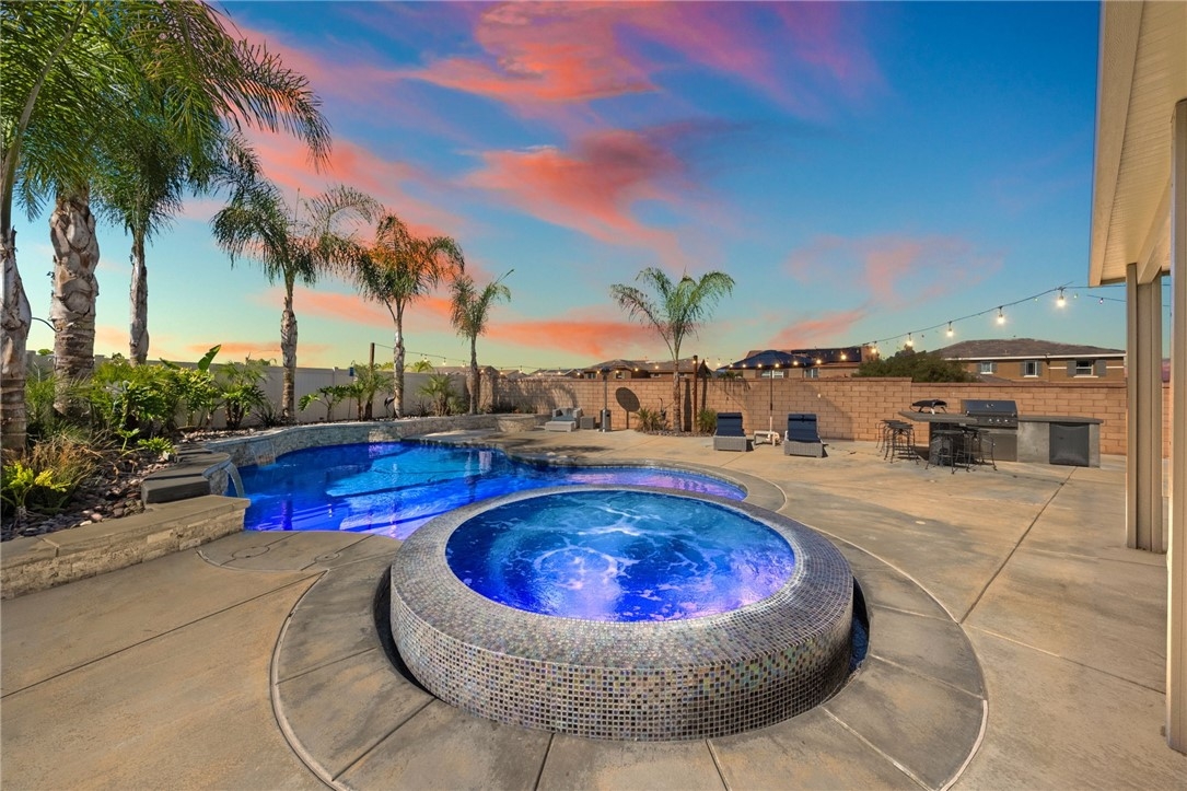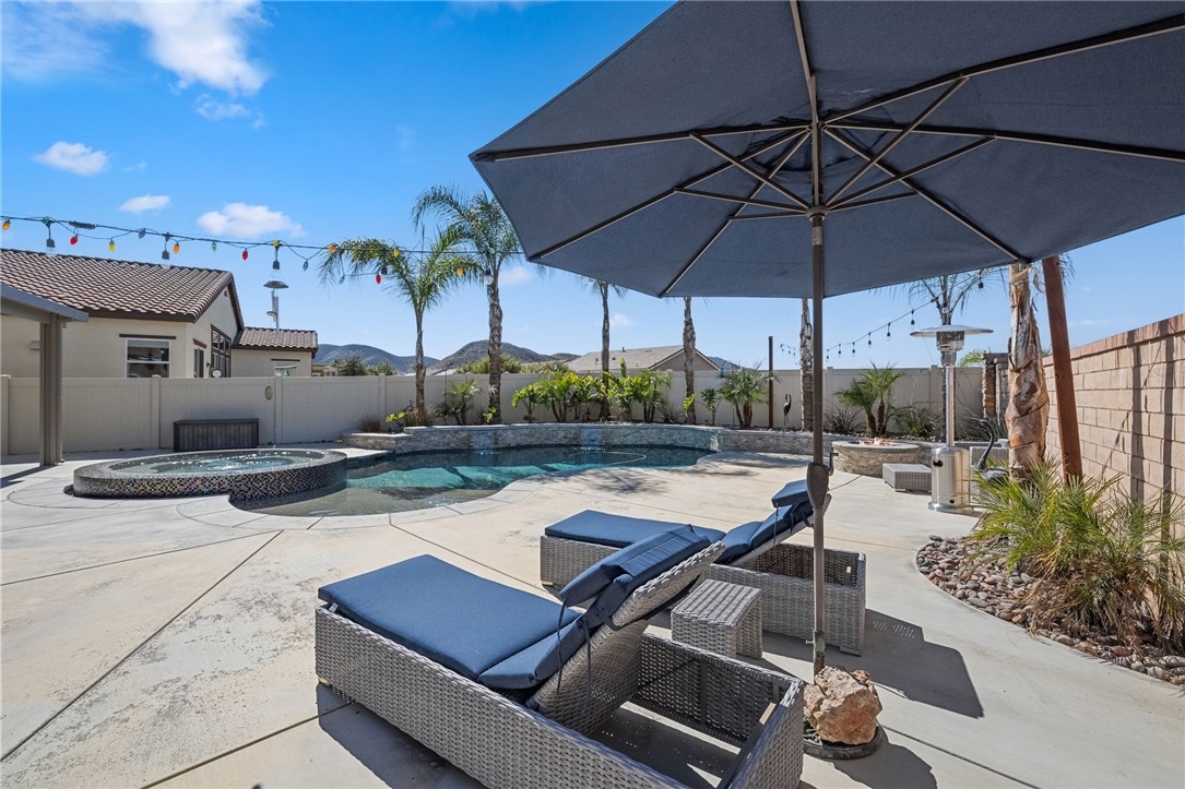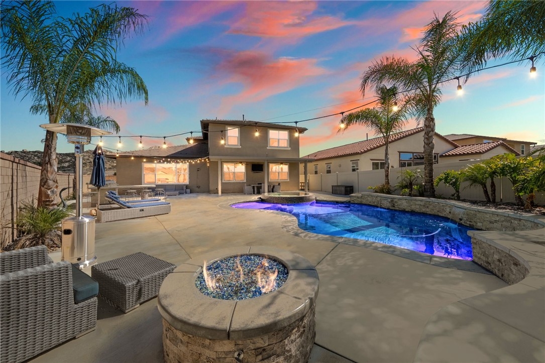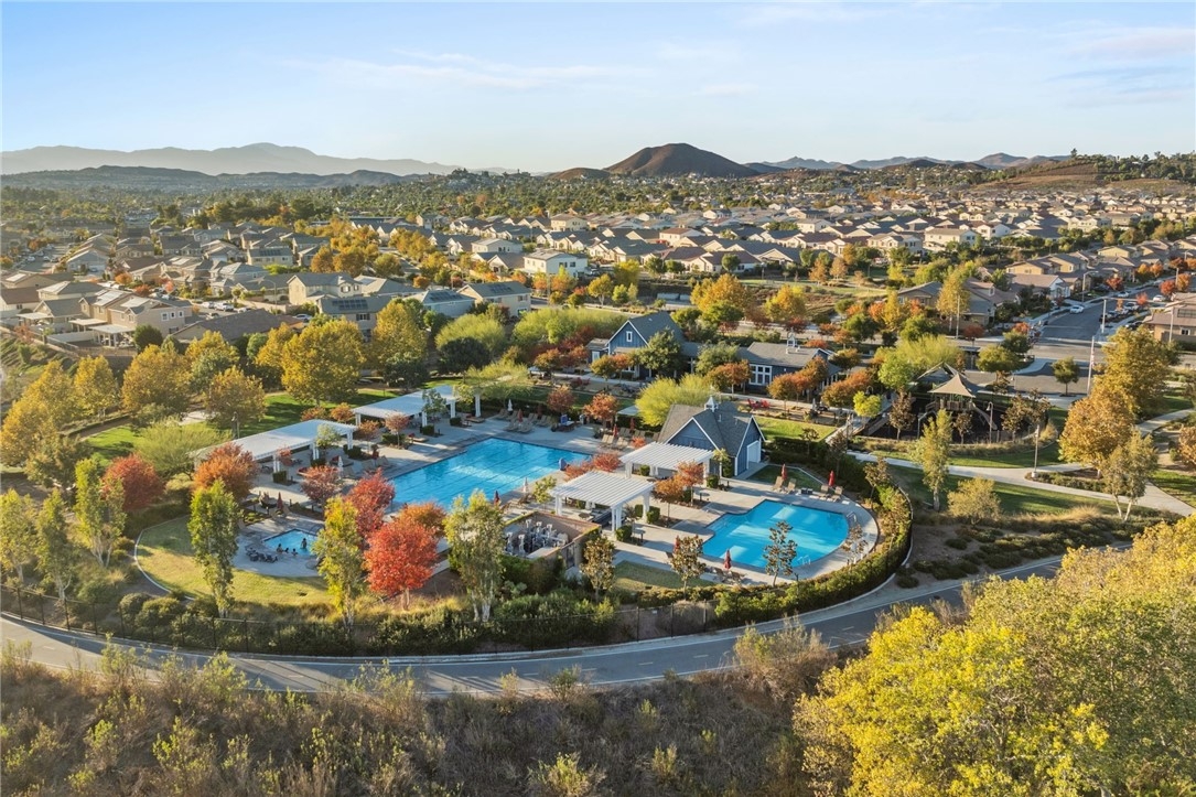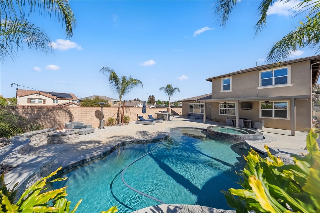 Live the Resort Lifestyle in Audie Murphy Ranch! Don’t miss this incredible opportunity to own a stunning home in the highly sought-after Audie Murphy Ranch Community! Perfectly situated on a prime corner lot just across from Taawila Elementary School, this home is packed with high-end upgrades and luxurious touches. Step inside to discover a bright, open-concept layout featuring premium finishes throughout - stainless steel appliances, quartz countertops, white shaker cabinets, elegant pendant lighting, and luxury flooring. The spacious great room features a fireplace and is perfect for entertaining, seamlessly flowing into a formal dining room and a gourmet eat-in kitchen with a huge walk-in pantry. And just wait until you see the backyard! Designed for ultimate relaxation and entertainment, this resort-style retreat boasts a gorgeous Pebble Tec pool, a custom oversized designer glass-tile spa with a floating edge, towering palm trees, a cozy fire pit, and a built-in BBQ island with a mini bar fridge. The covered patio, complete with double ceiling fans, offers the perfect spot to unwind year-round. This exceptional home features 4 spacious bedrooms, including one downstairs, a versatile loft that can easily be converted into a 5th bedroom, plantation shutters, and blinds throughout. The 3-car tandem garage comes with a brand-new insulated garage door, while added upgrades include a Vivint security system, a RainSoft water softener, upgraded fireplace, LED lighting, rain gutters, and custom landscaping. Beyond your private paradise, Audie Murphy Ranch offers unmatched amenities, including resort-style pools, spas, sports courts, a clubhouse, scenic trails, a skate park, and close to schools. Conveniently located between the 15 & 215 freeways, this home is just minutes from shopping, dining, and the renowned Temecula wineries.