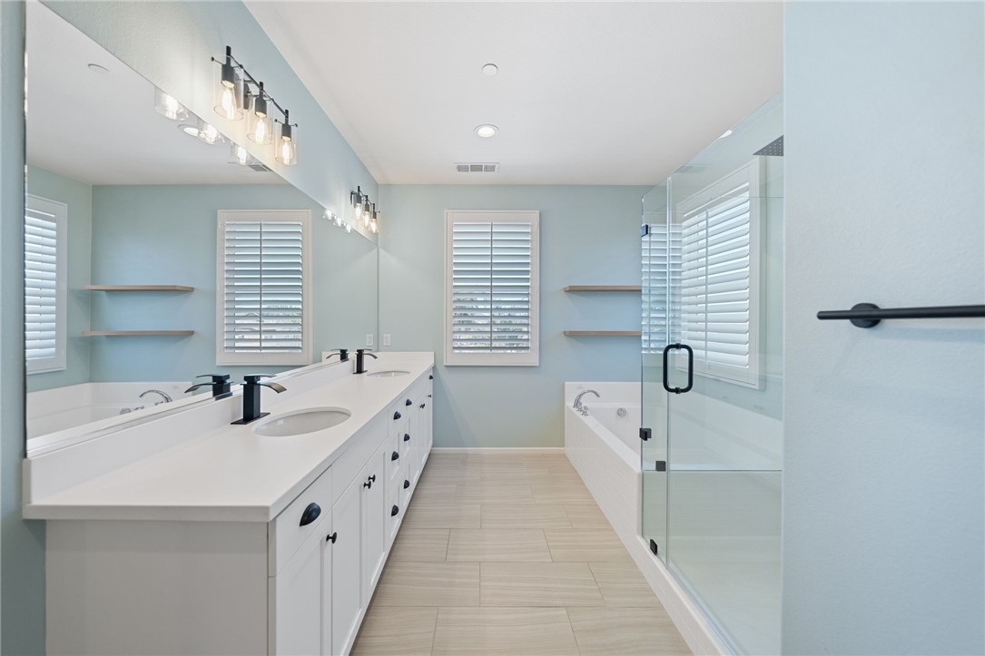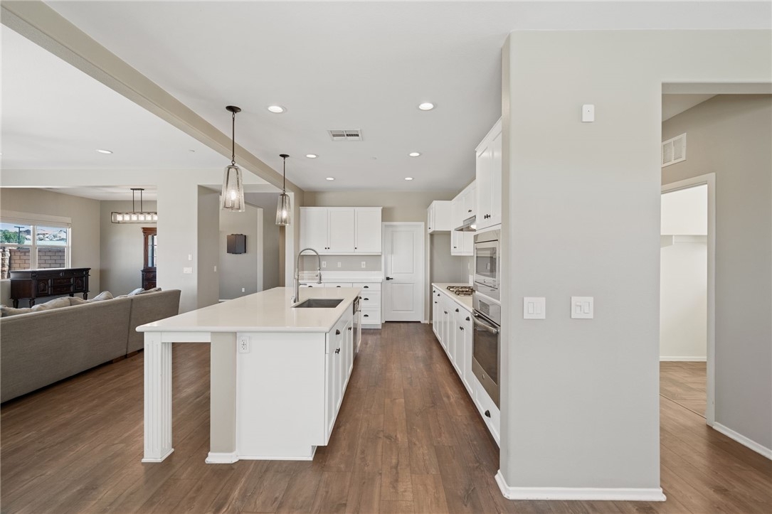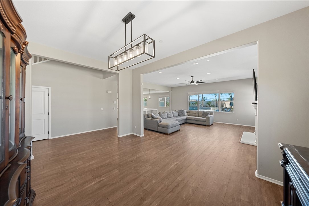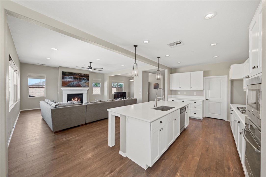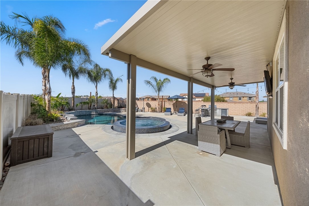 Live the Resort Lifestyle in Audie Murphy Ranch! Don’t miss this incredible opportunity to own a stunning home in the highly sought-after Audie Murphy Ranch Community! Perfectly situated on a prime corner lot just across from Taawila Elementary School, this home is packed with high-end upgrades and luxurious touches. Step inside to discover a bright, open-concept layout featuring premium finishes throughout - stainless steel appliances, quartz countertops, white shaker cabinets, elegant pendant lighting, and luxury flooring. The spacious great room features a fireplace and is perfect for entertaining, seamlessly flowing into a formal dining room and a gourmet eat-in kitchen with a huge walk-in pantry. And just wait until you see the backyard! Designed for ultimate relaxation and entertainment, this resort-style retreat boasts a gorgeous Pebble Tec pool, a custom oversized designer glass-tile spa with a floating edge, towering palm trees, a cozy fire pit, and a built-in BBQ island with a mini bar fridge. The covered patio, complete with double ceiling fans, offers the perfect spot to unwind year-round. This exceptional home features 4 spacious bedrooms, including one downstairs, a versatile loft that can easily be converted into a 5th bedroom, plantation shutters, and blinds throughout. The 3-car tandem garage comes with a brand-new insulated garage door, while added upgrades include a Vivint security system, a RainSoft water softener, upgraded fireplace, LED lighting, rain gutters, and custom landscaping. Beyond your private paradise, Audie Murphy Ranch offers unmatched amenities, including resort-style pools, spas, sports courts, a clubhouse, scenic trails, a skate park, and close to schools. Conveniently located between the 15 & 215 freeways, this home is just minutes from shopping, dining, and the renowned Temecula wineries.